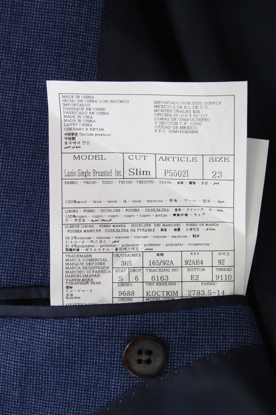 SUITSUPPLY Lazio Suit Men's UK36S Blue Wool Slim Fit 2 Piece with Pleats
