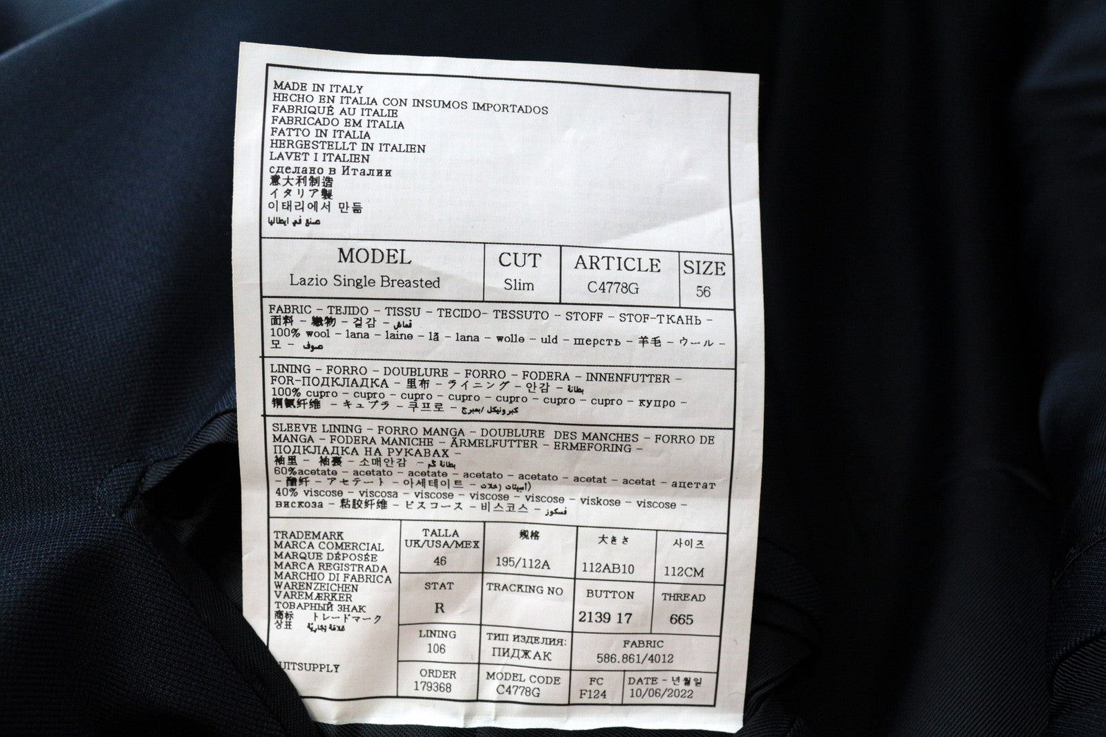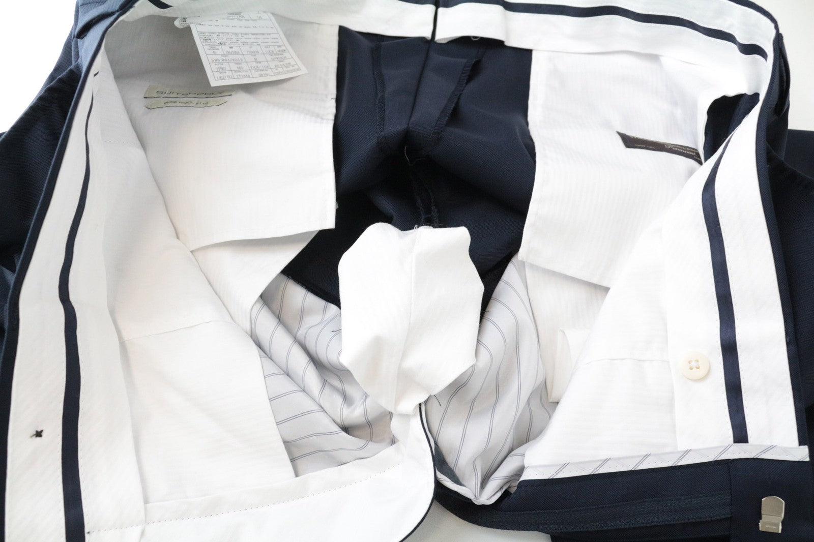 CONDITION: Used. Mended inner trousers' lining around the crotch area. Tear in the lapel and lining. Please see added photos.