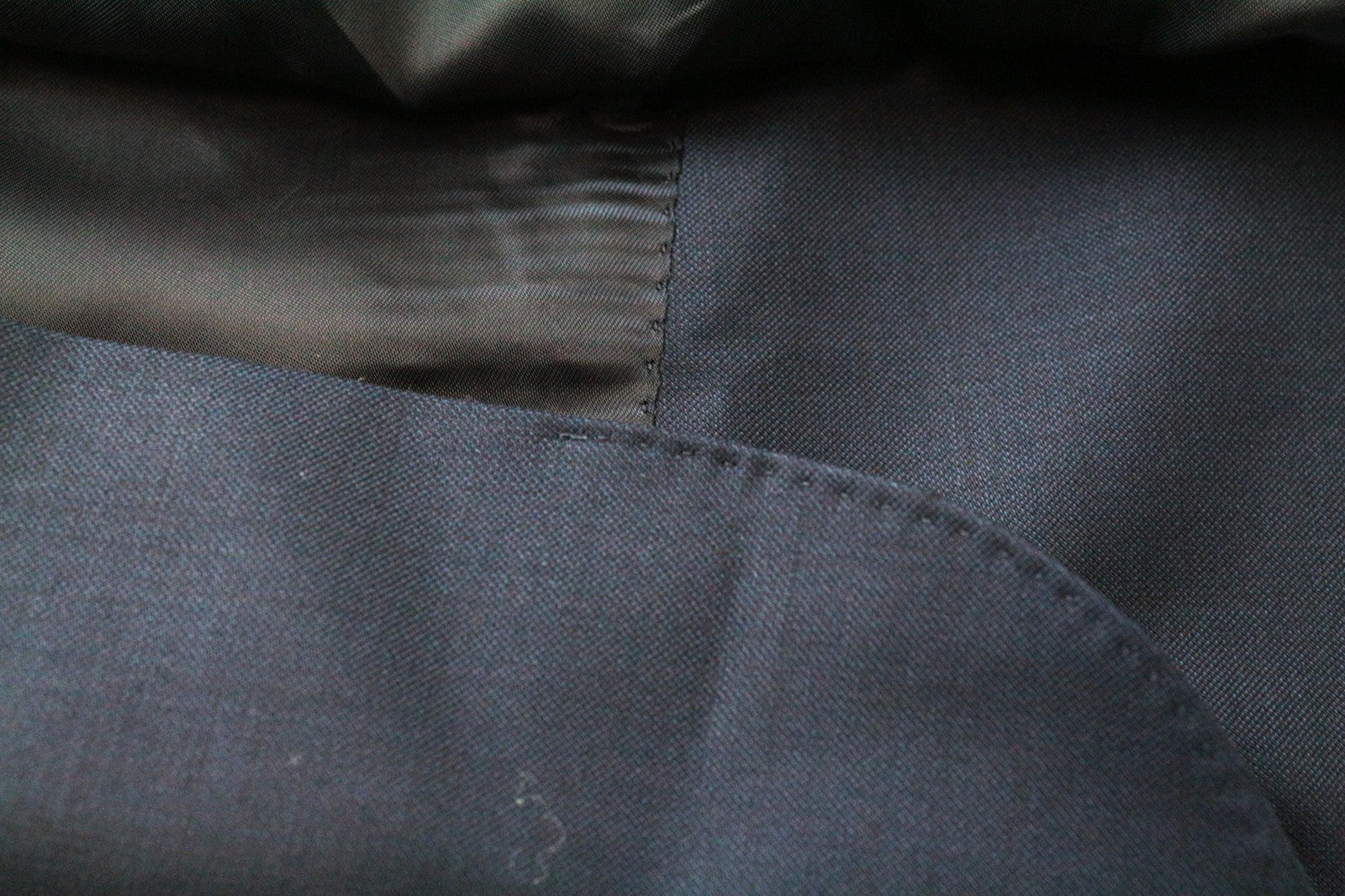 Used. Mended inner trousers' lining around the crotch area. Tear in the lapel and lining. Please see added photos.
