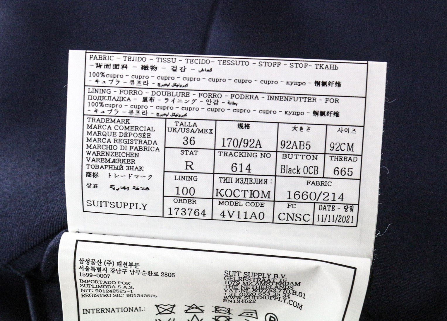 SUITSUPPLY Lazio Tuxedo Men's Suit UK36R Slim Fit Navy Super 130's Wool 3-Piece