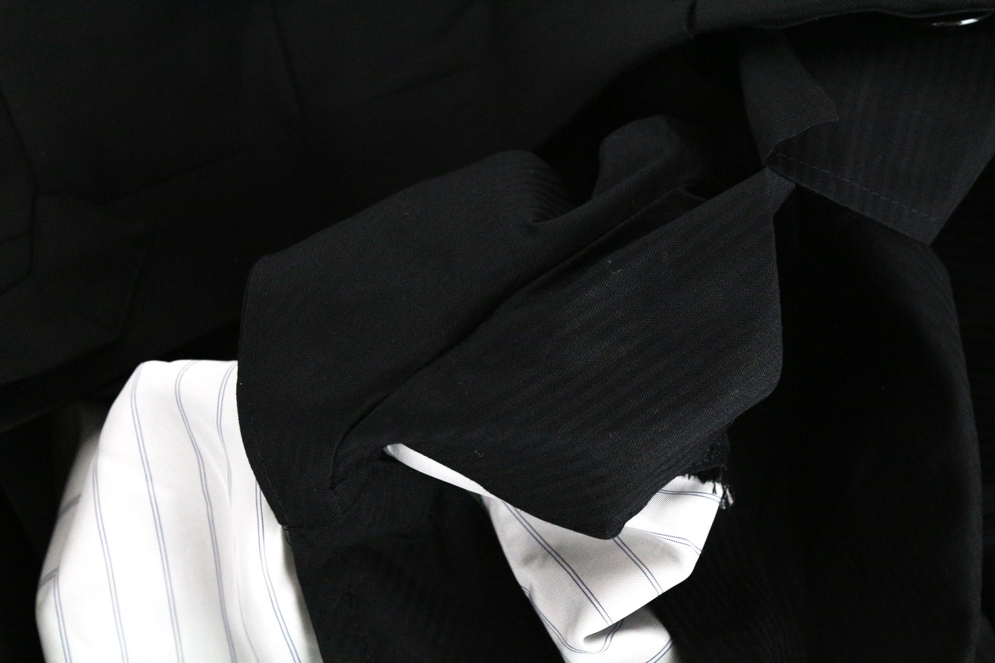 Condition: Used. Mended hems and inner trousers' lining around the crotch area. Pulled thread on the lapel. Pay attention that trousers are shorter than usual. Please see added photos.