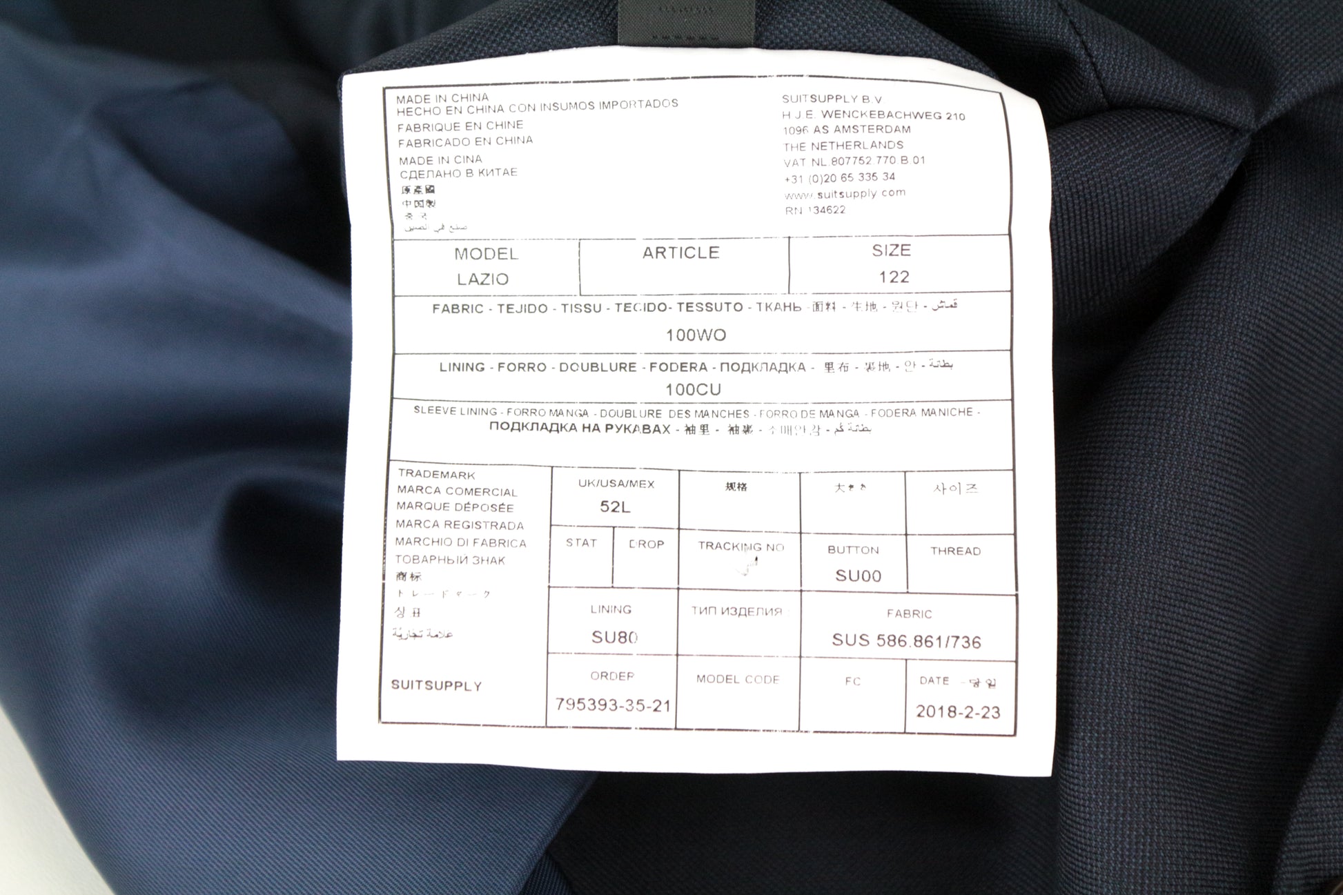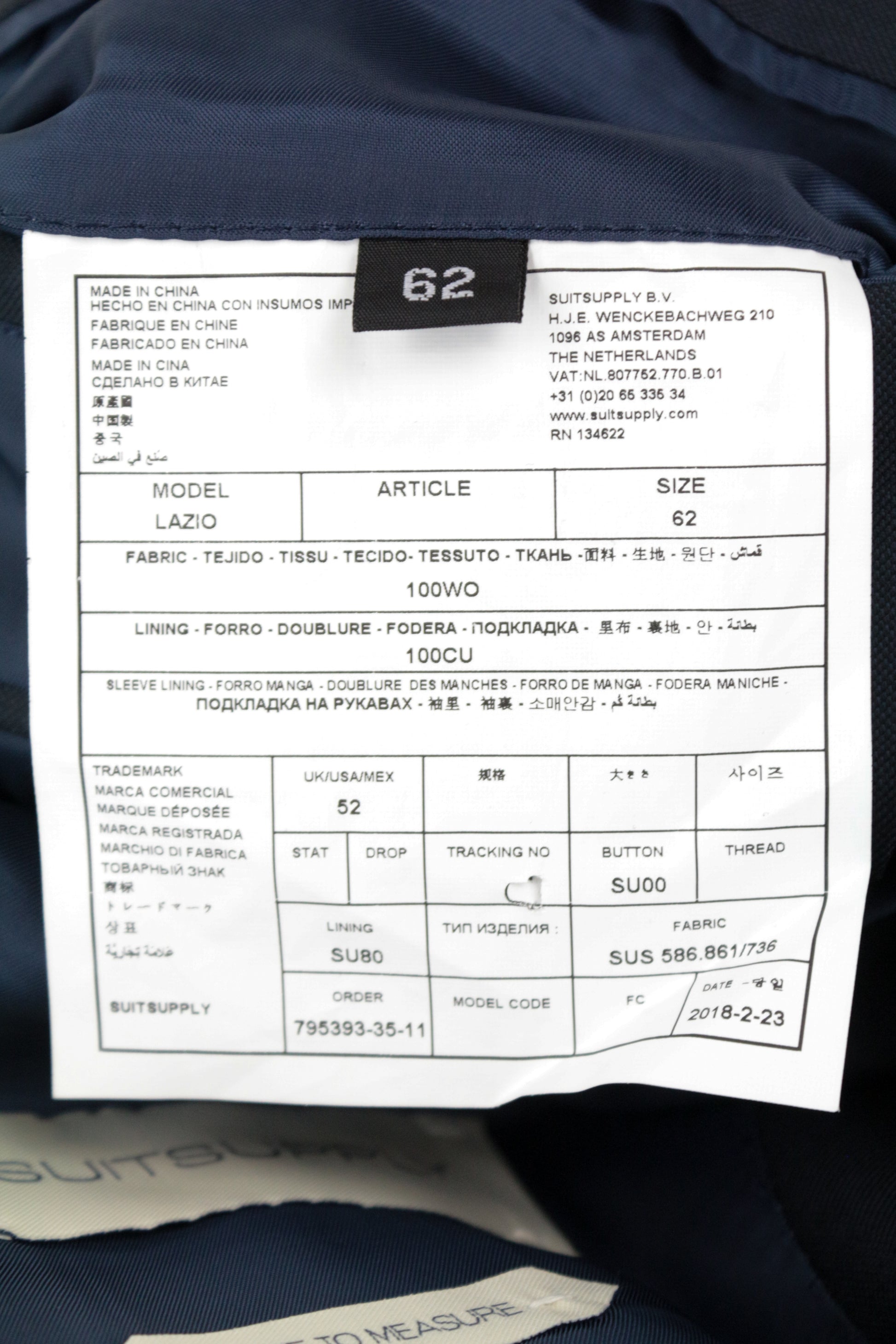 SUITSUPPLY Lazio UK52 Men's 3 Piece Blue Wool Suit Single-Breasted