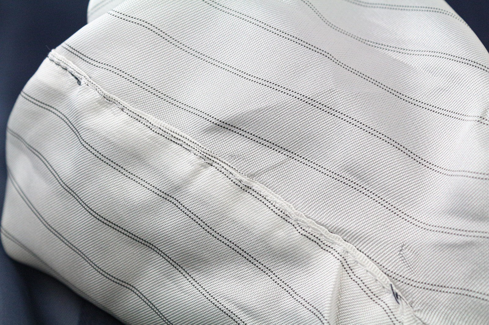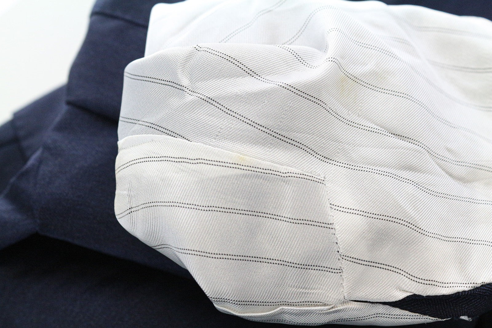 CONDITION: Used. Wearing marks around the armpits. Stained inside the cuffs. Pulled thread on the back. Please see added photos.
