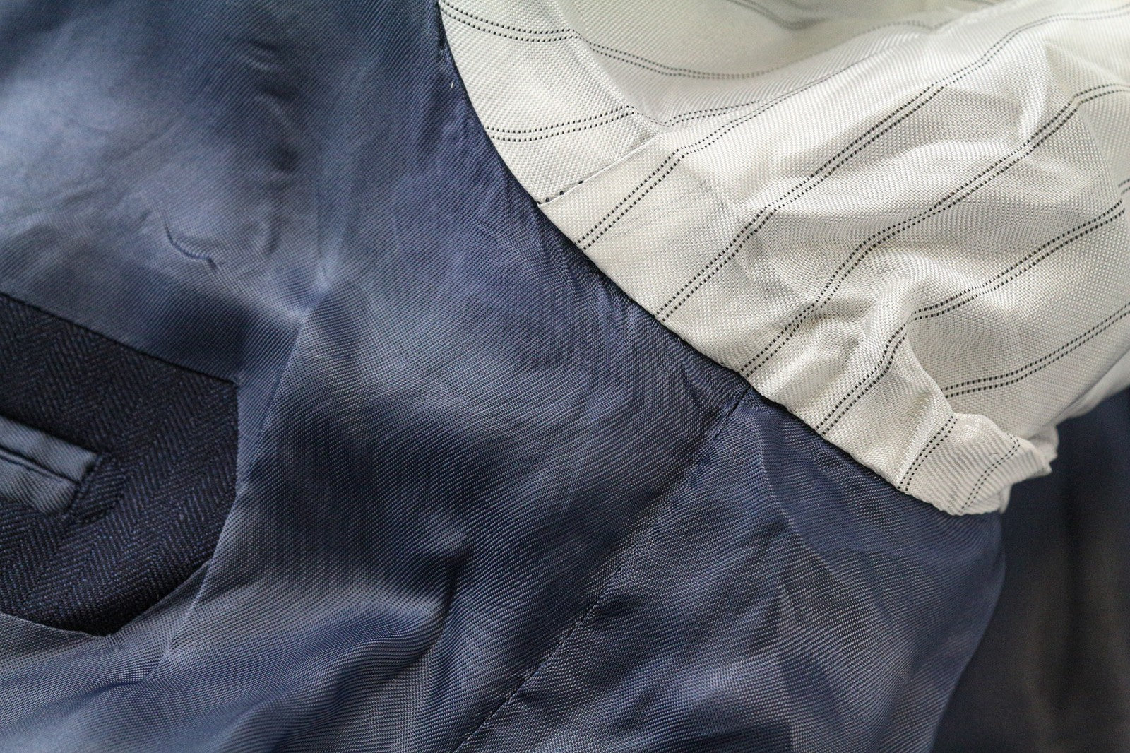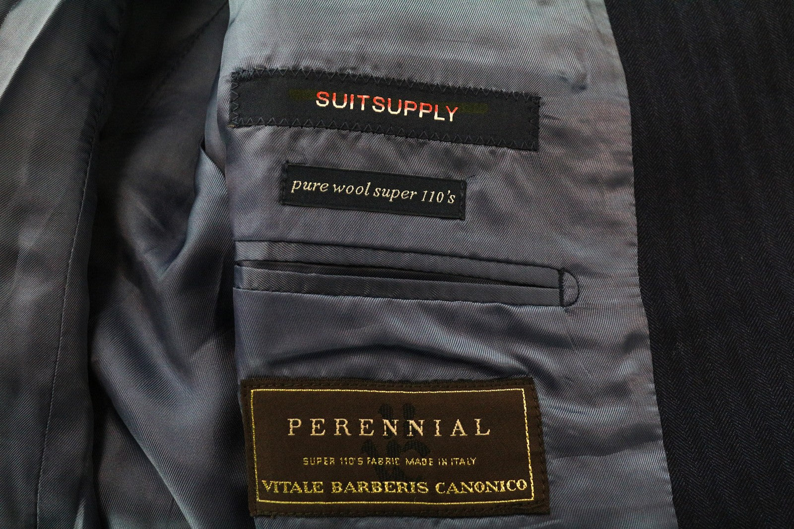 SUITSUPPLY Livorno Men's UK42L Blue Slim Herringbone Wool Blazer Classic Lined
