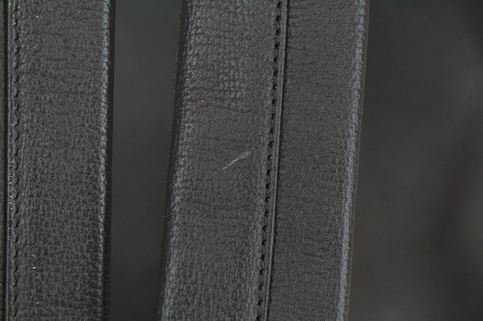 CONDITION: Used. Stained around the zipper. The main zipper doesn't work as smoothly as it should. Rubbed off leather surface of the outer shell and backpack's handle. Please see added photos.