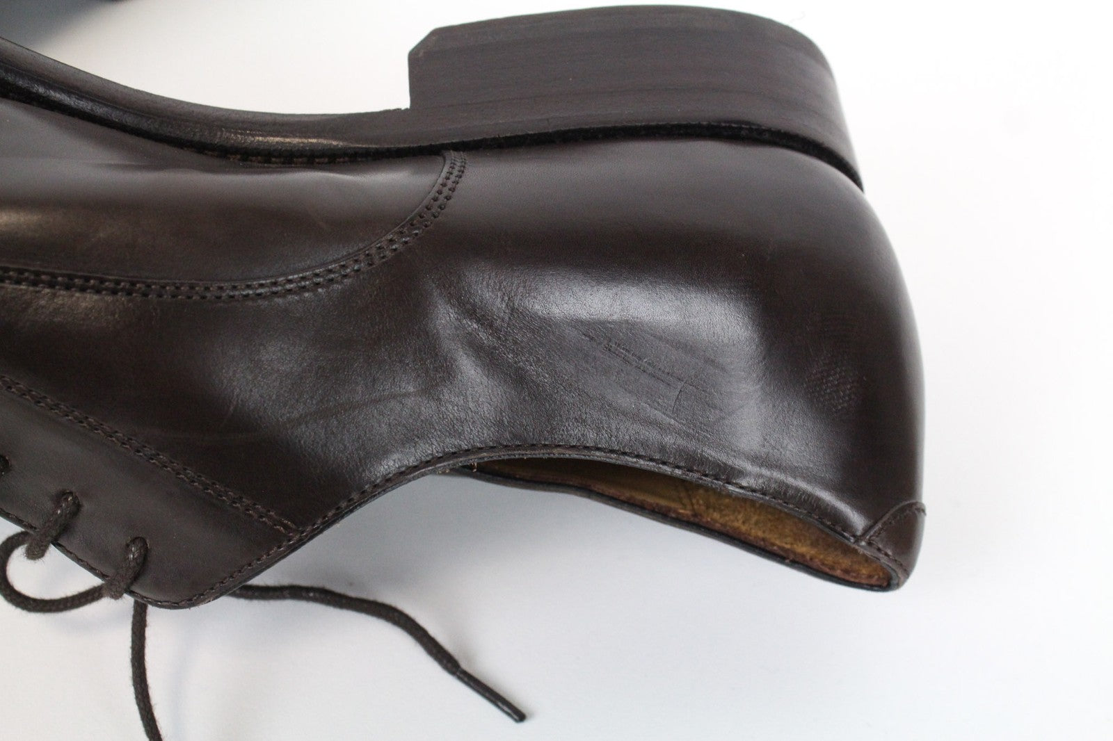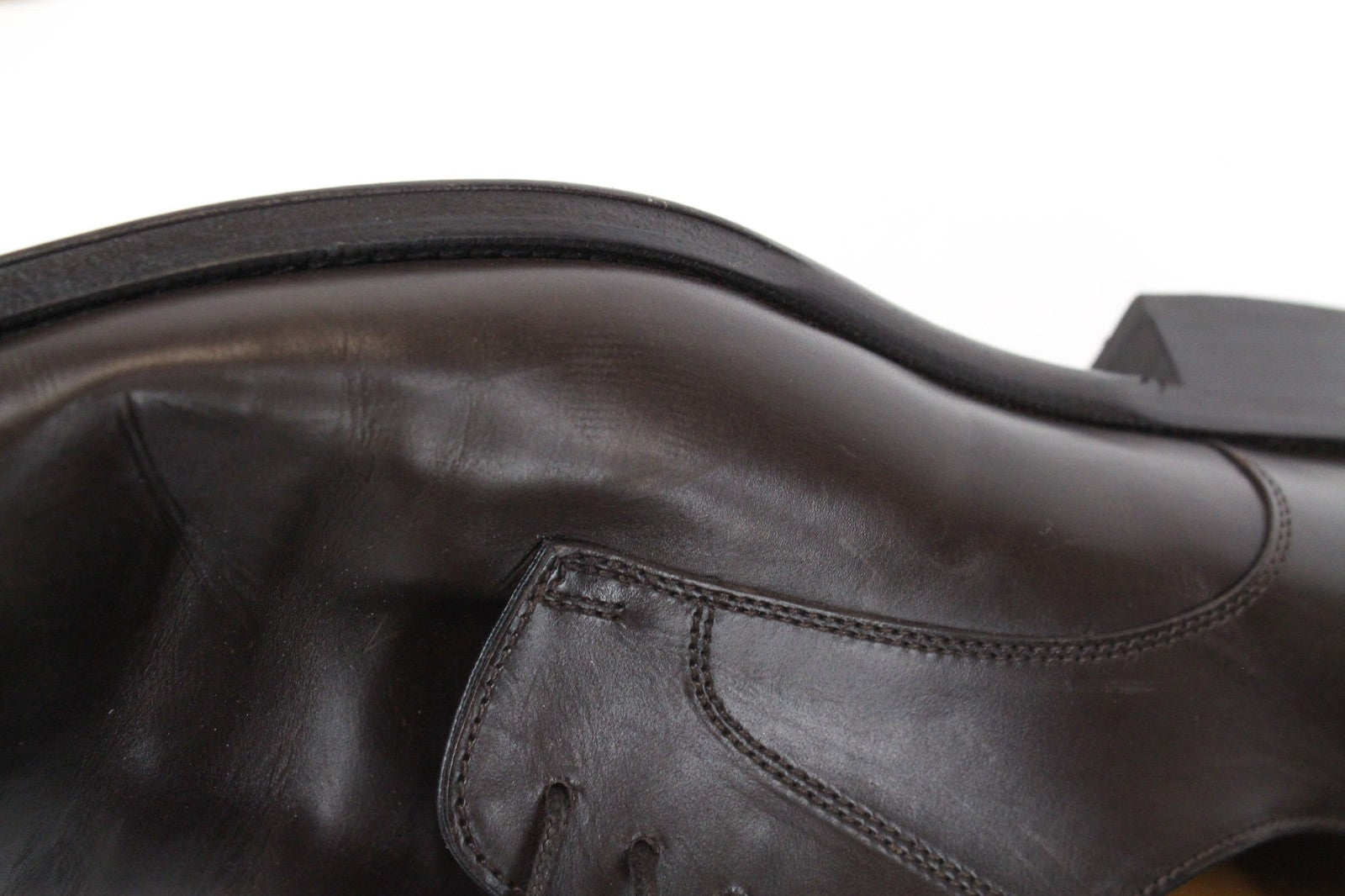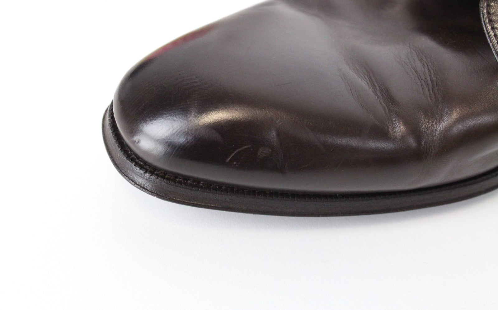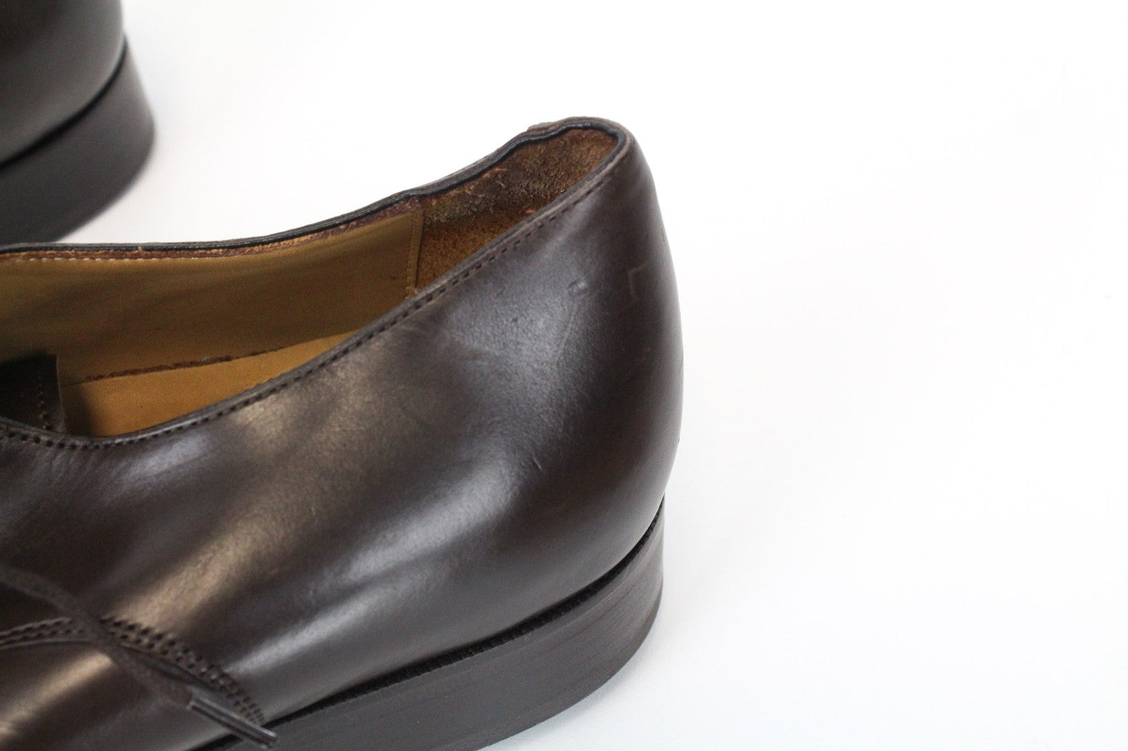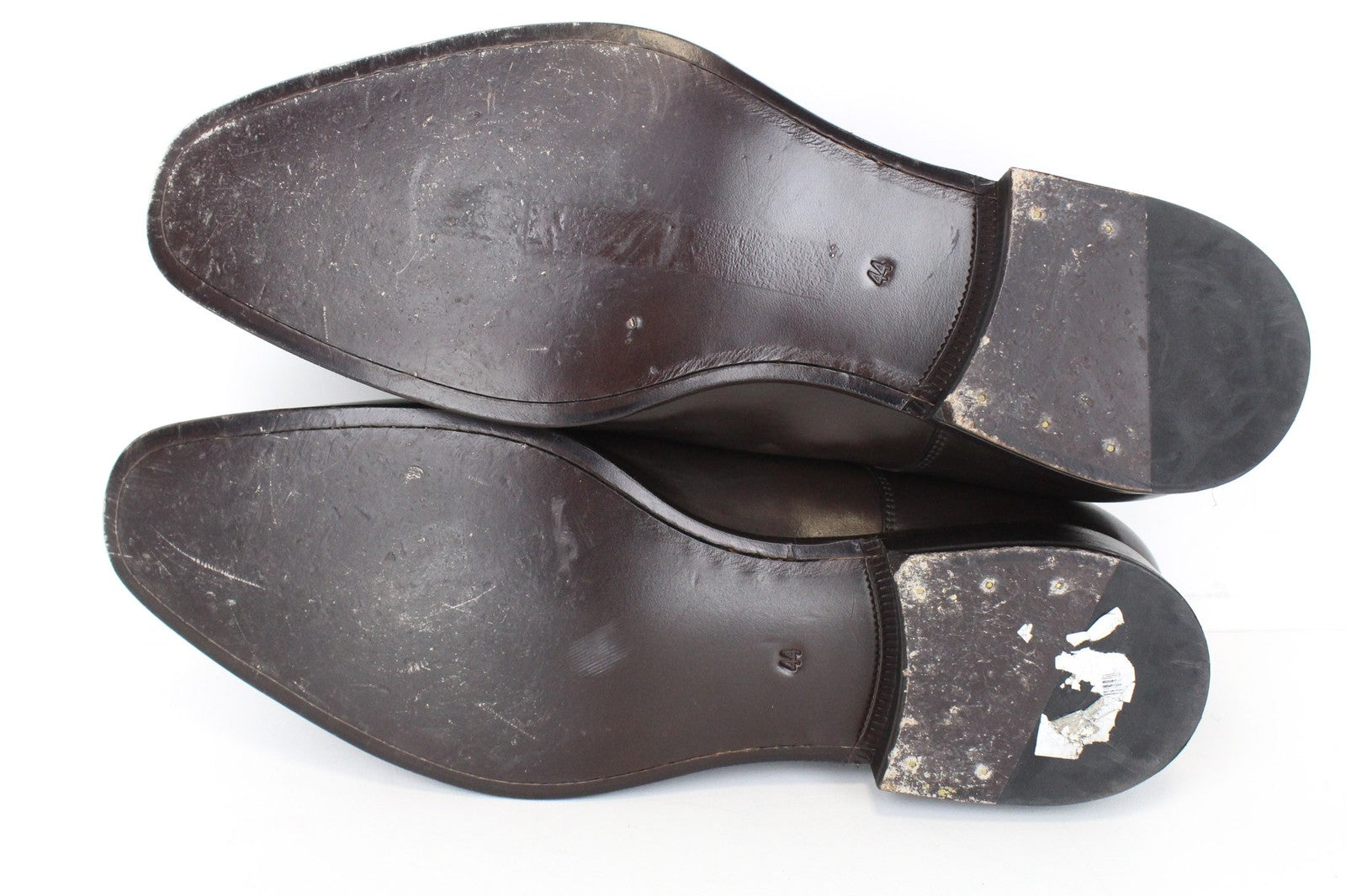 Used. Scratched soles, has imprints and scratches. Dented. Please see added photos.