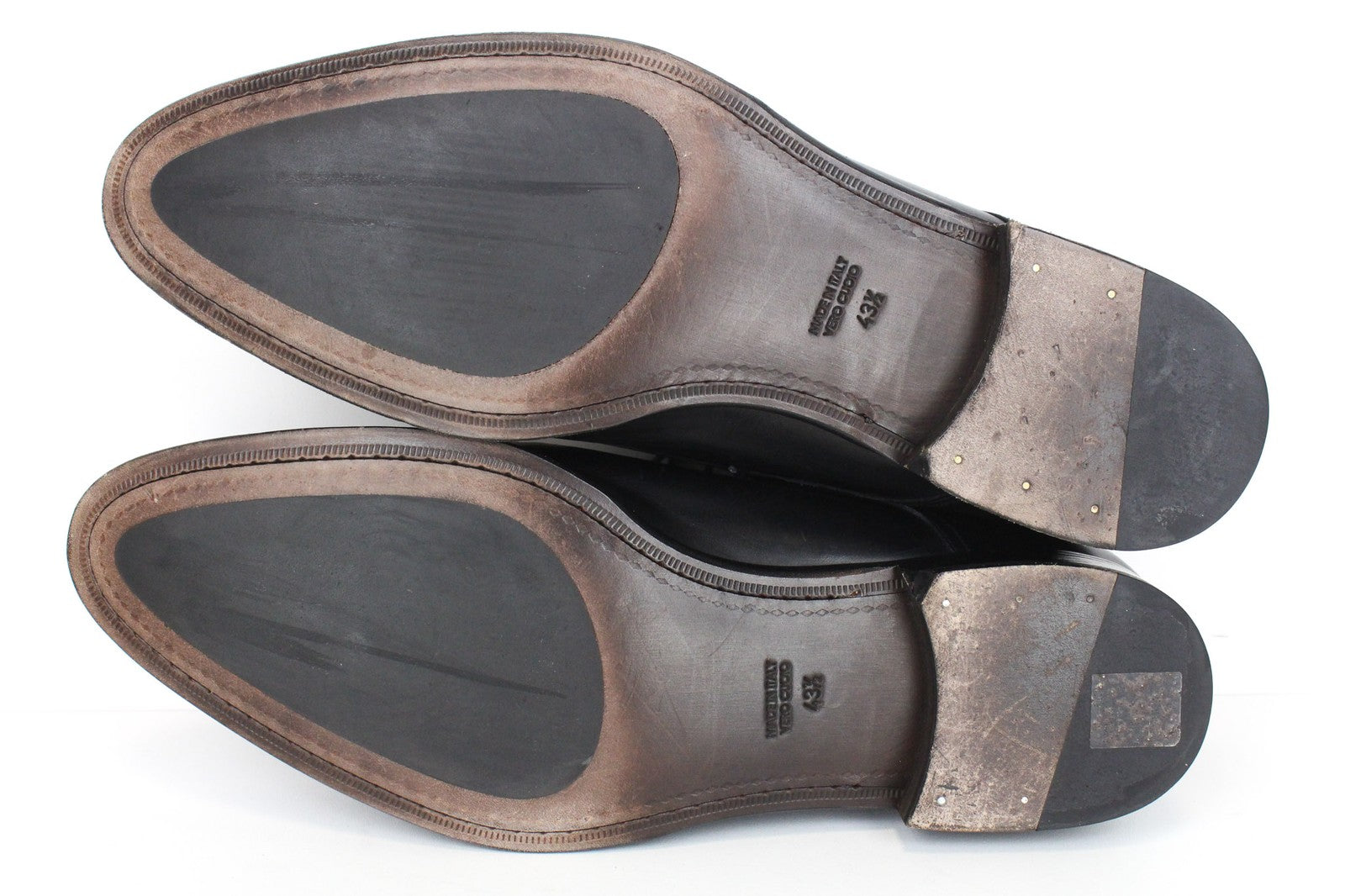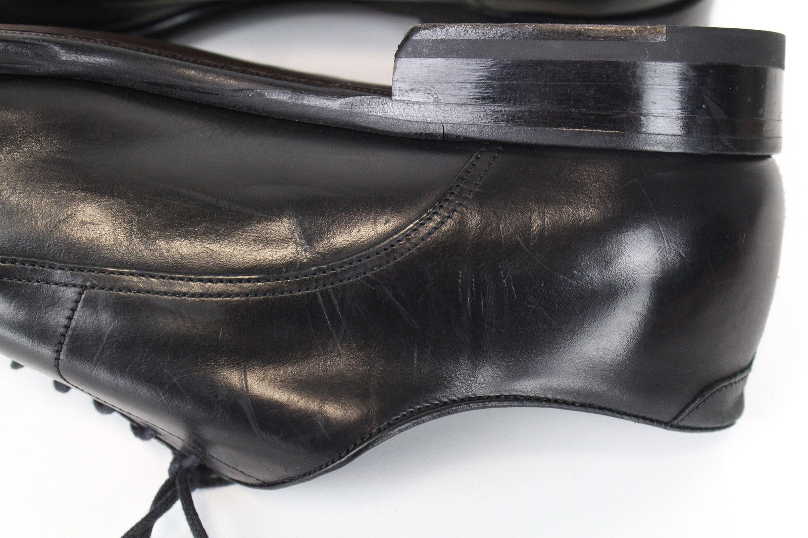 Used. Scratched uppers, slight imprints. Rubbed off leather and stained. Please see added photos.