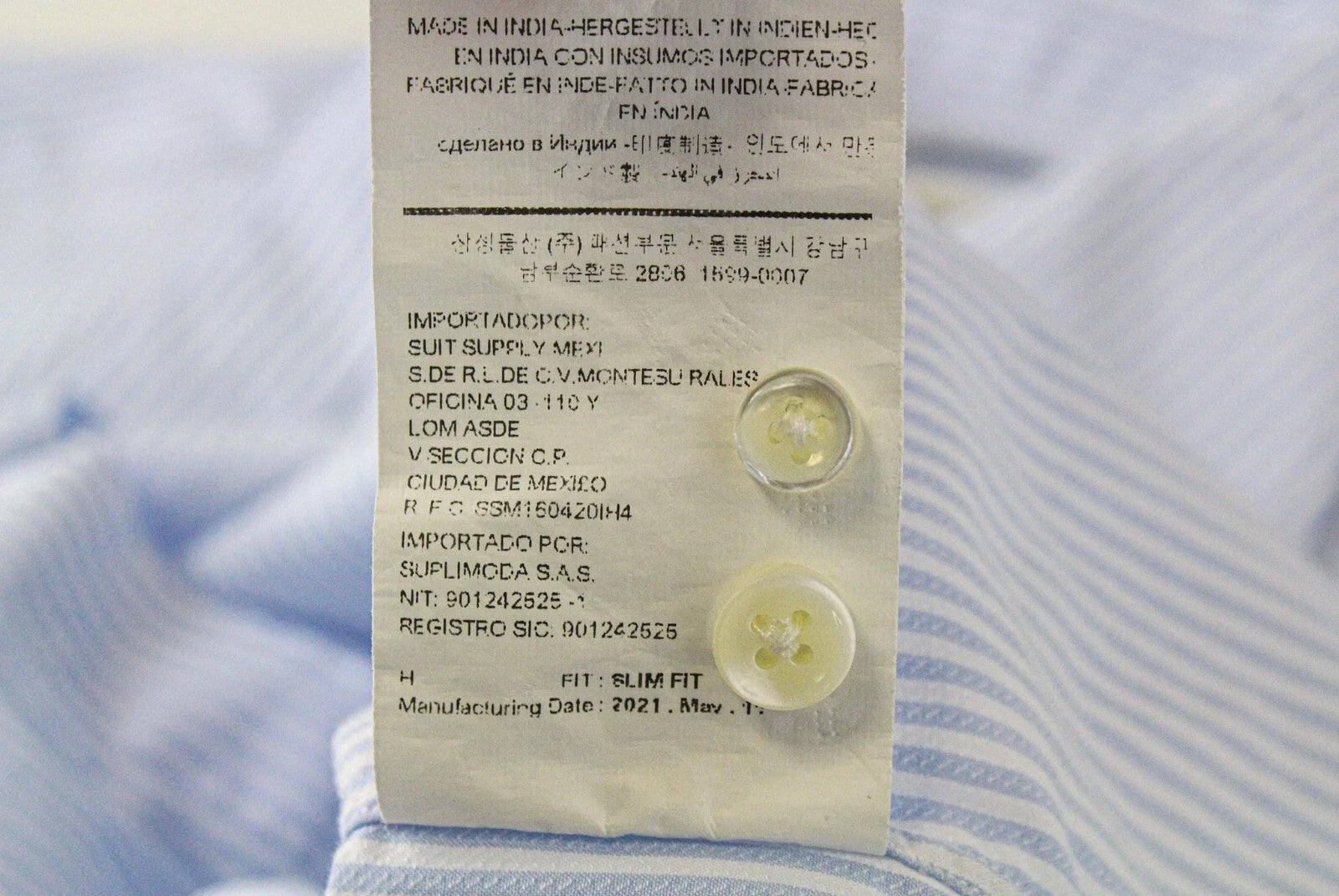 SUITSUPPLY Men's Formal Shirt 37/14 1/2 Blue Striped Slim Fit Pure Cotton Long
