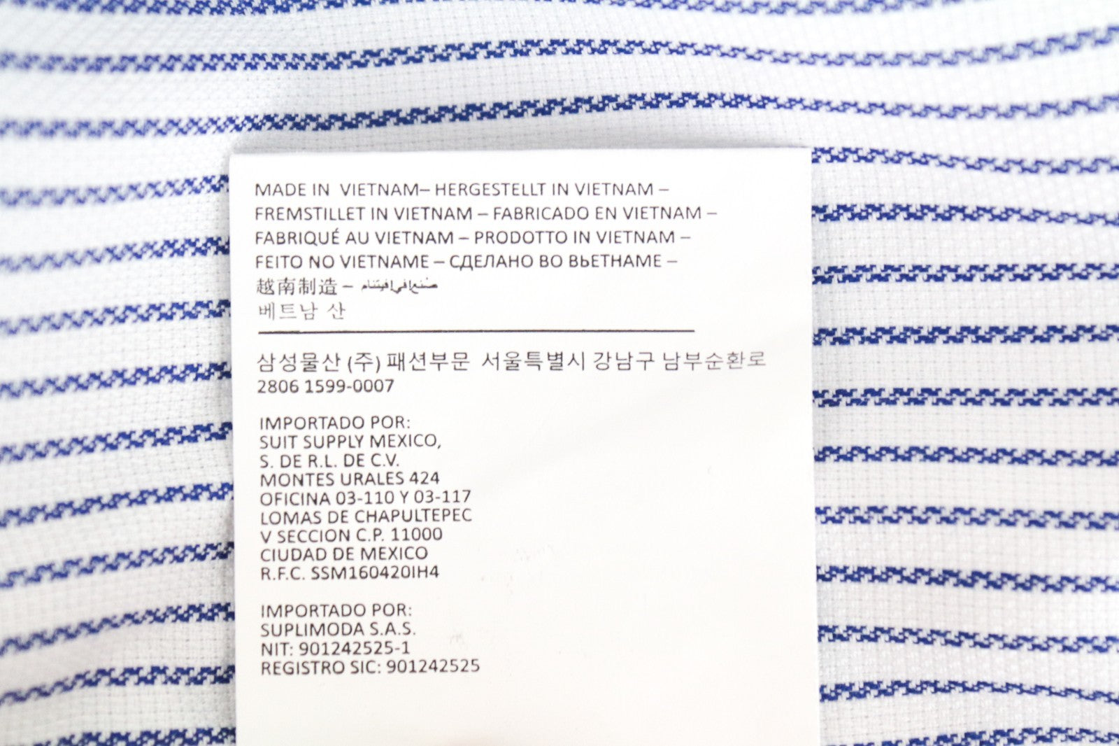 SUITSUPPLY Men's Formal Shirt 38 White Slim Pure Cotton Long Sleeve Striped