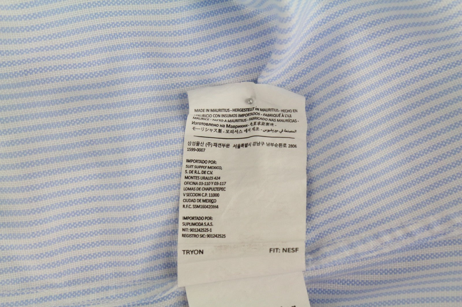 SUITSUPPLY Men's Formal Shirt 39L/15 1/2L Blue Striped Slim Pure Cotton Try On