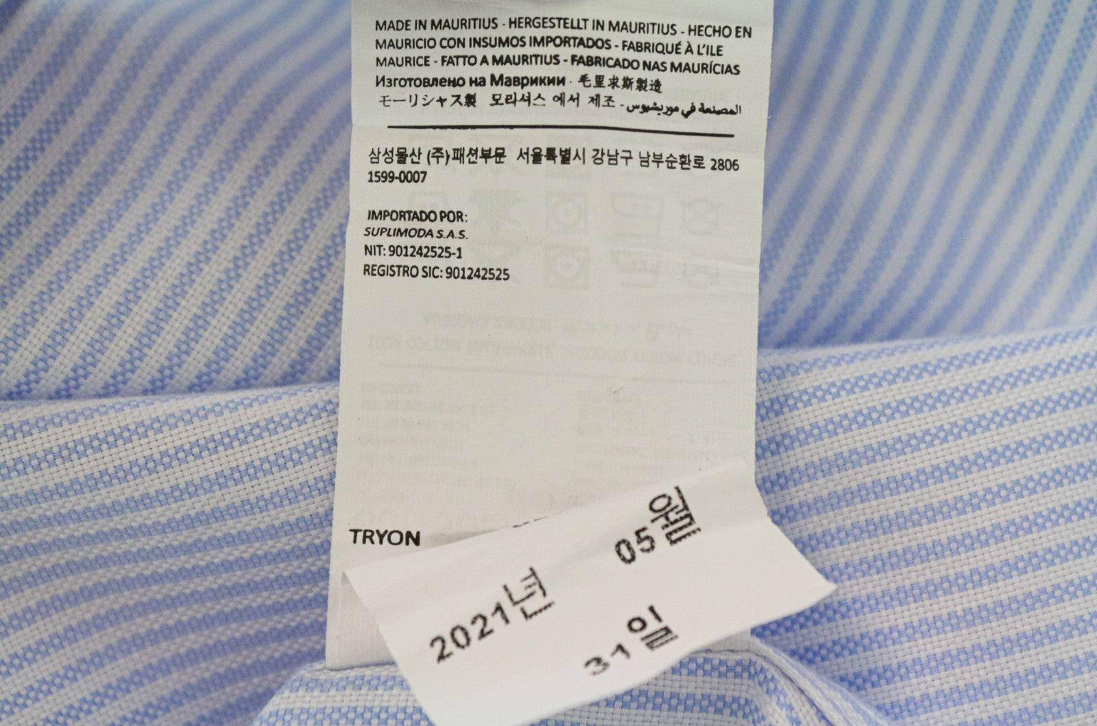 SUITSUPPLY Men's Formal Shirt 40/15 3/4 Blue Extra Slim Pure Cotton Striped