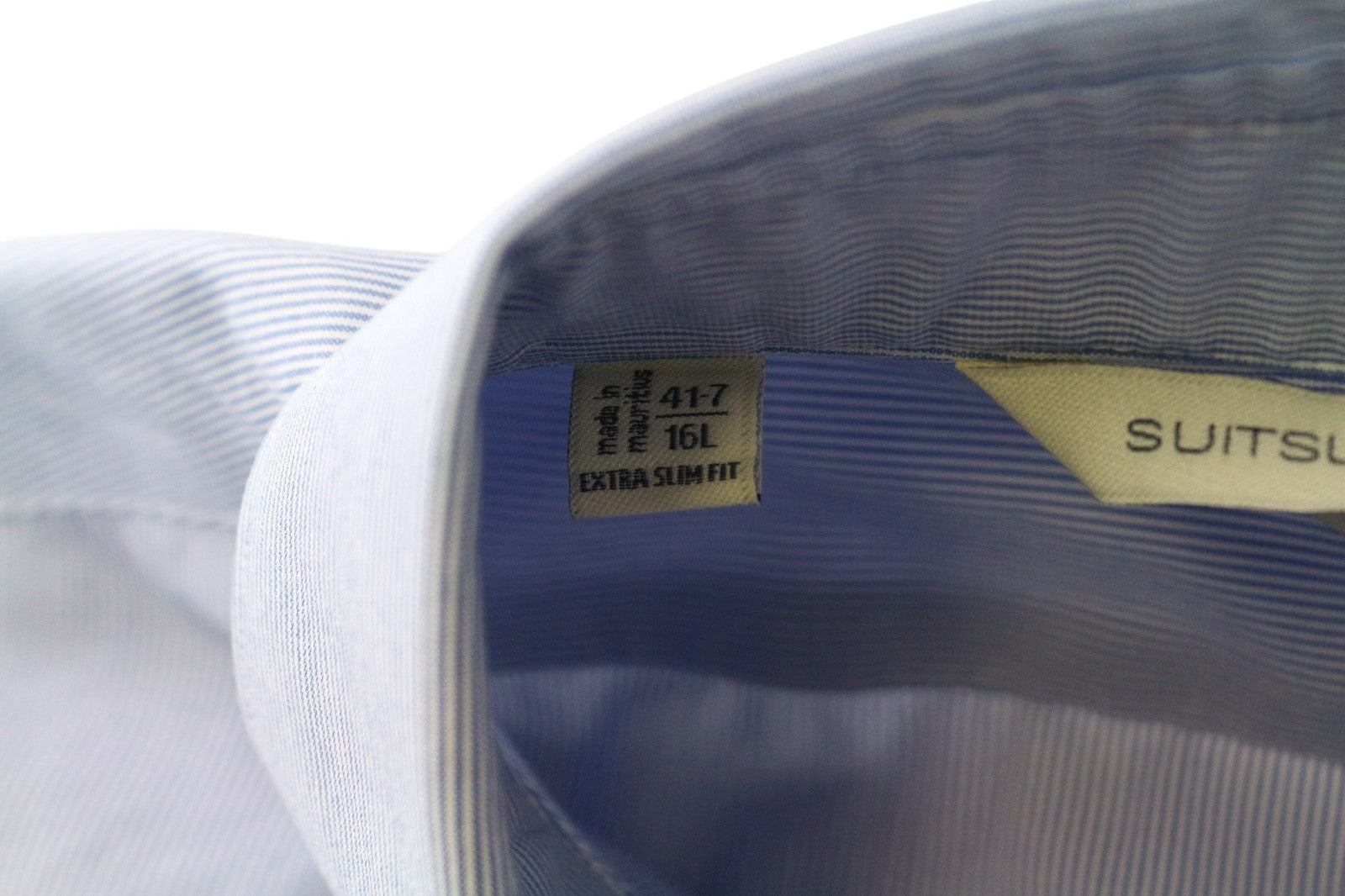 SUITSUPPLY Men's Formal Shirt 41.7/16L Blue Striped Extra Slim Pure Cotton
