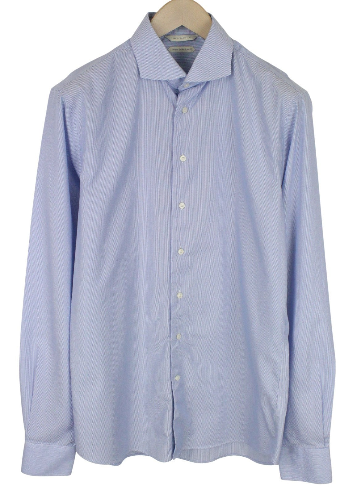 SUITSUPPLY Men's Formal Shirt 41.7/16L Try On Striped Blue Extra Slim Fit