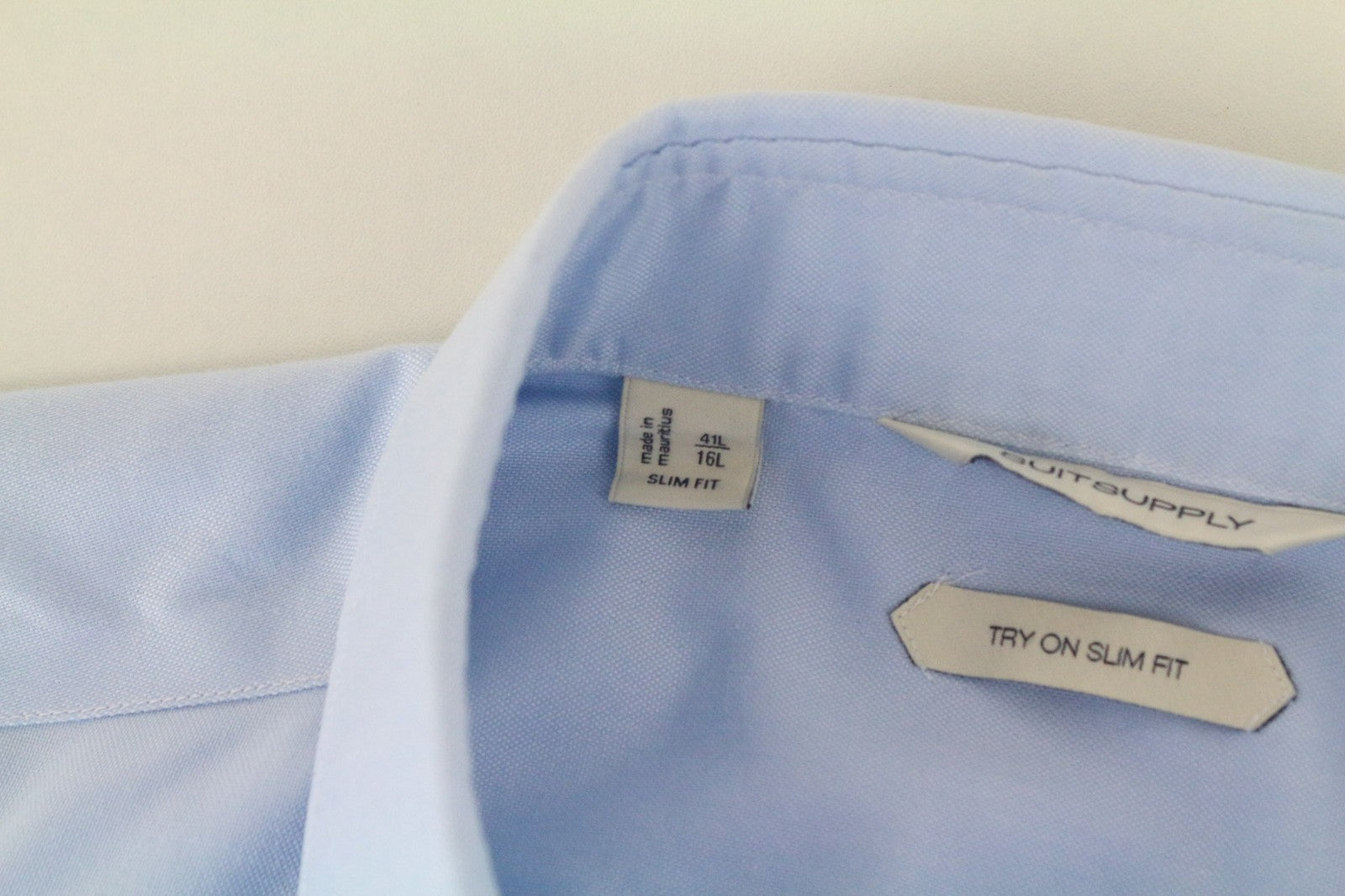 SUITSUPPLY Men's Formal Shirt 41L/16L Blue Melange Try On Slim Fit Pure Cotton