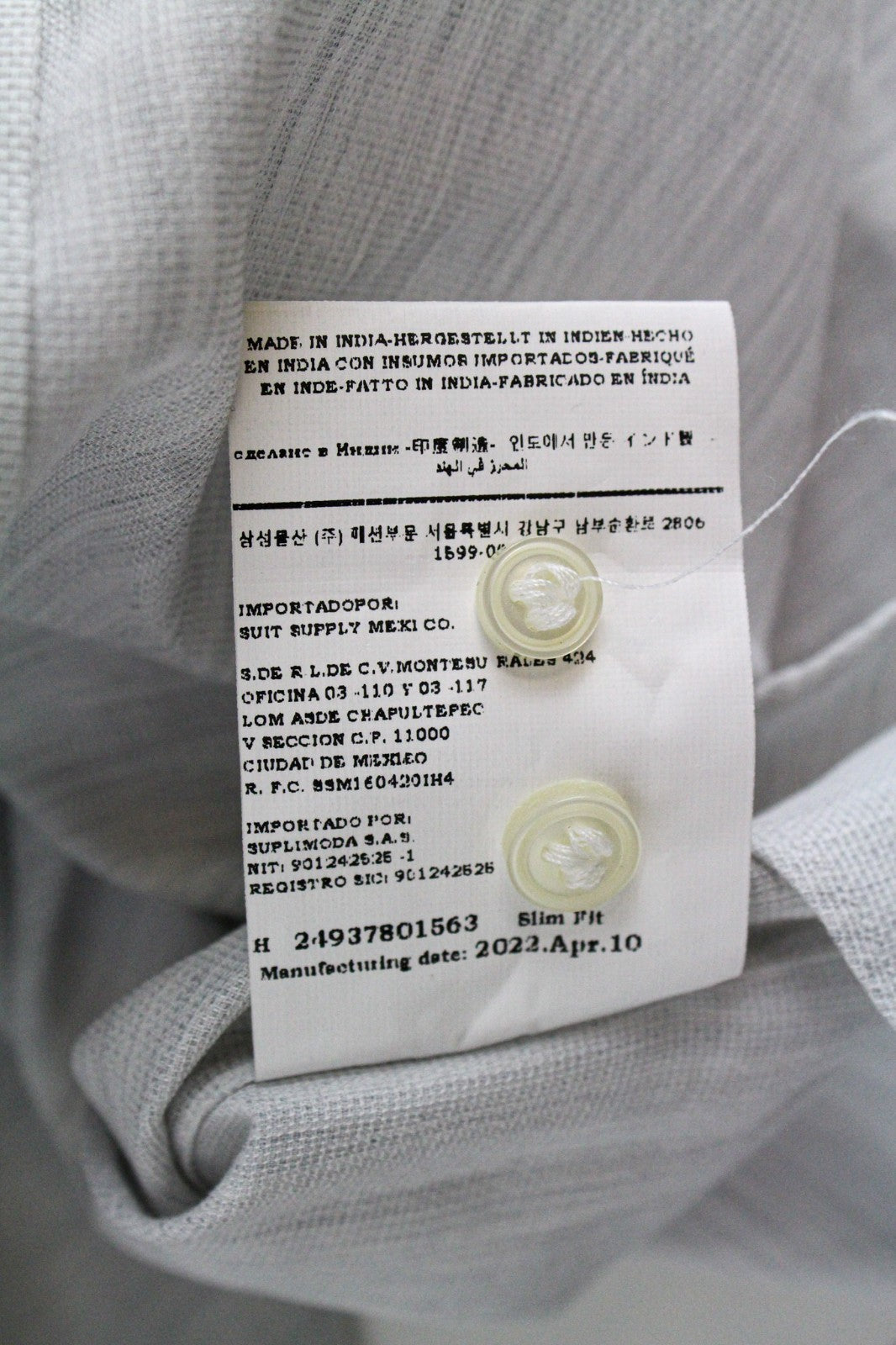 SUITSUPPLY Men's Formal Shirt ~S Light Grey Slim Twill Pure Cotton Classic