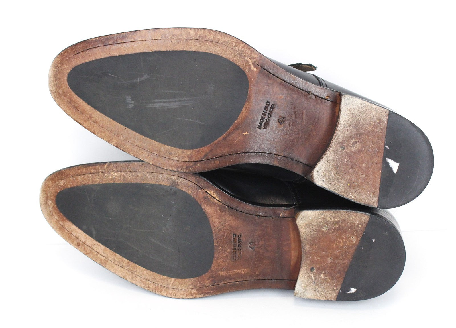 SUITSUPPLY Men's Formal Shoes EU41 Black Leather Double Buckle Low-Top Classic