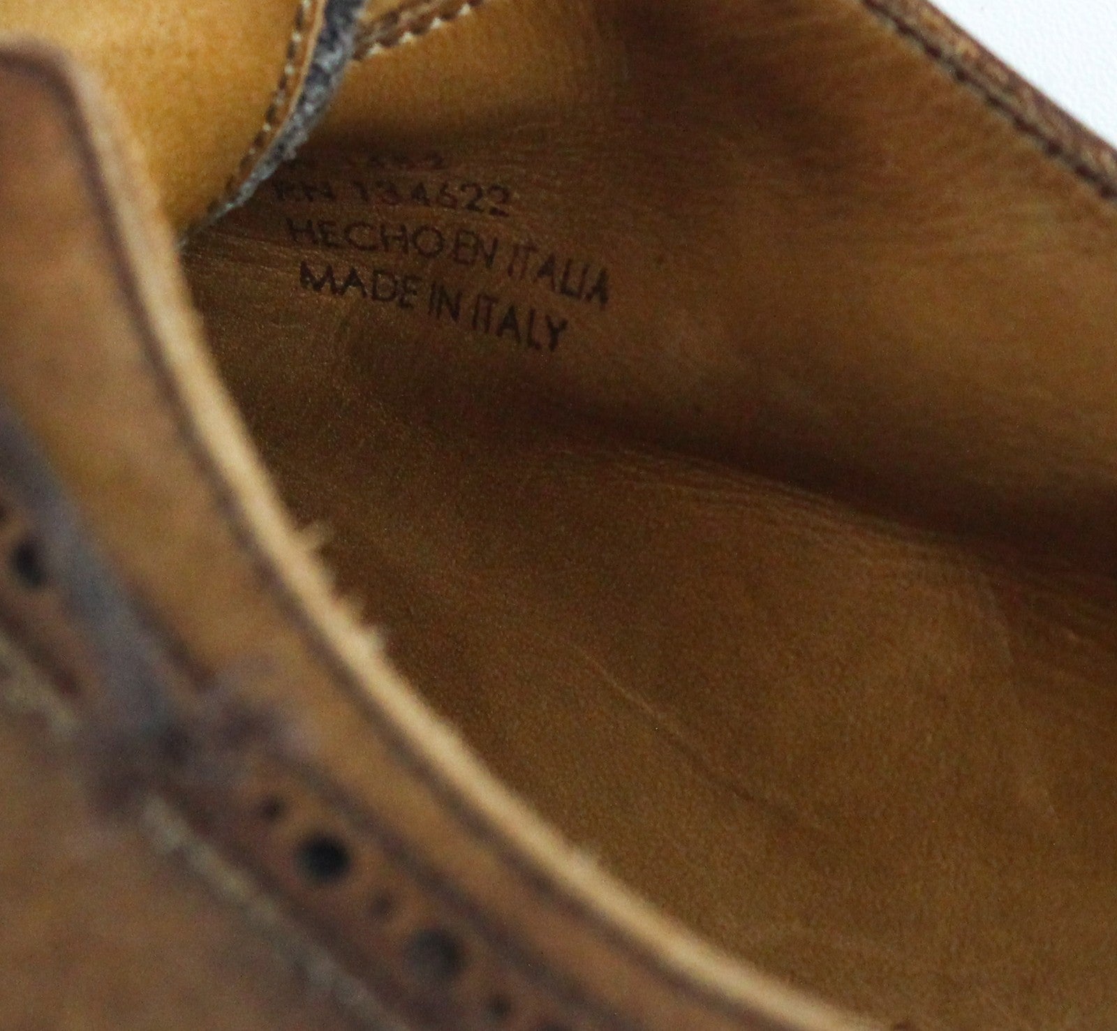 Used. Rubbed off soles. Has wrinkles, imprints and scratches. Missing plastic ends on the laces. Please see added photos.