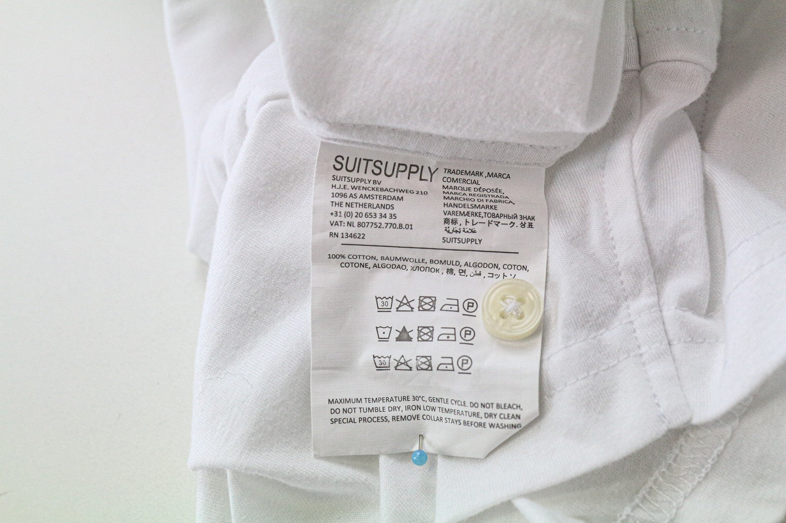 SUITSUPPLY Men's Polo Shirt 43/44/17/17.5 Extra Slim White Short Sleeve Cotton