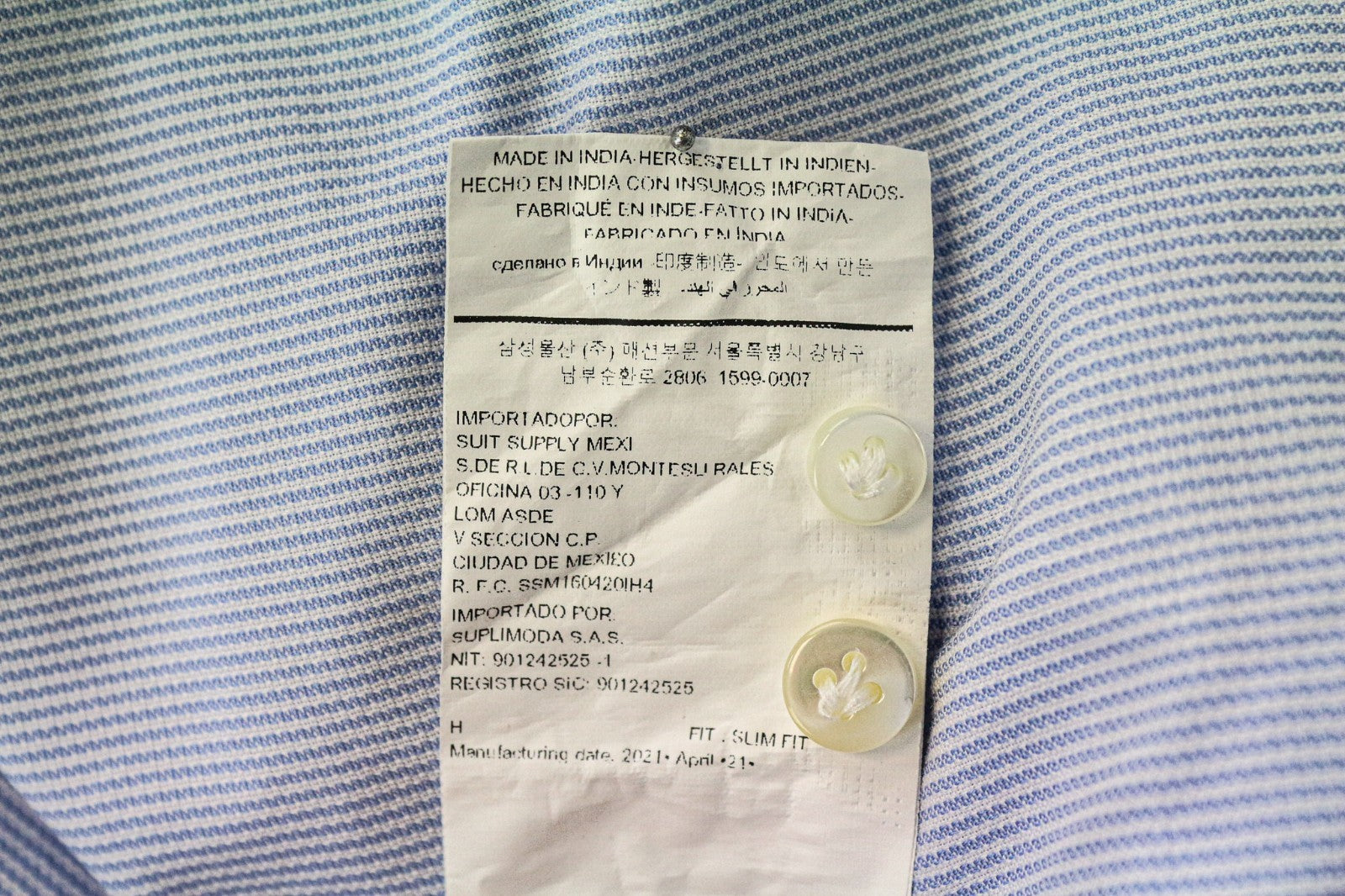 SUITSUPPLY Men's Shirt 37/14.5 Slim Blue Cotton Striped Long Sleeve Formal Top
