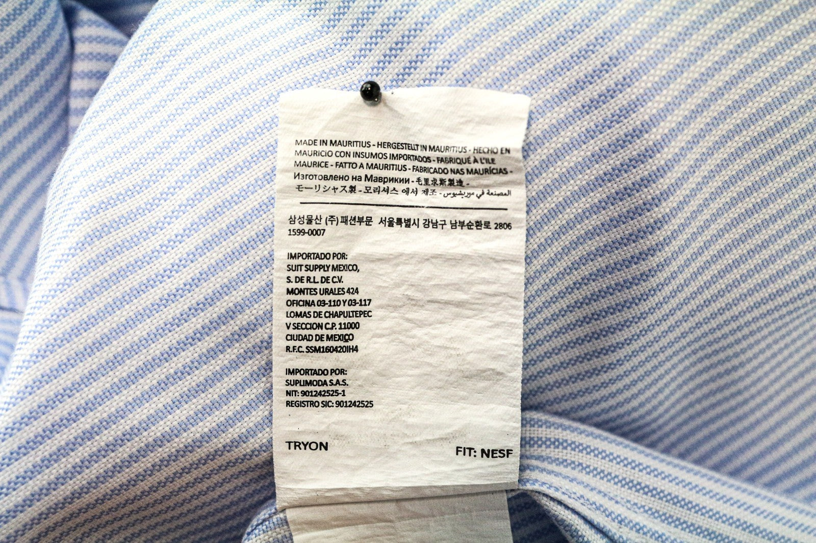SUITSUPPLY Men's Shirt 42/16.5 Blue Extra Slim Cotton Stripe Long Sleeve