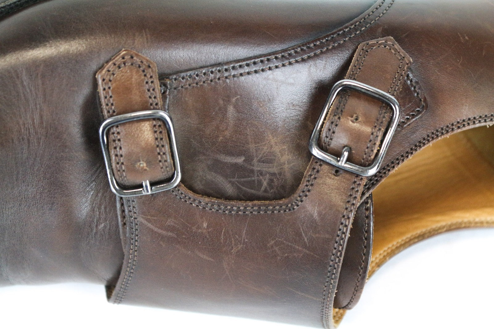 CONDITION: Used. Scratched soles. Has wrinkles and scratches, faded fronts, rubbed off leather from the inside. Please see added photos.