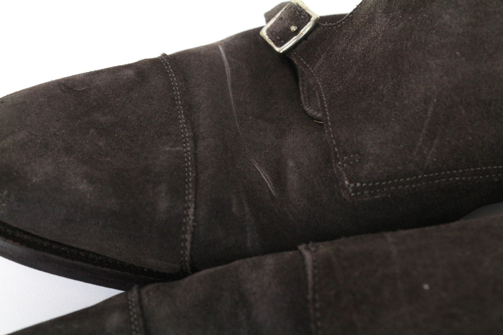 SUITSUPPLY Men's Shoes EU43 Dark Brown Suede Leather Double Monk Strap Formal