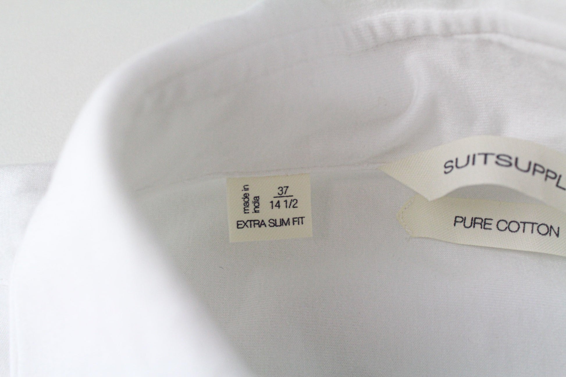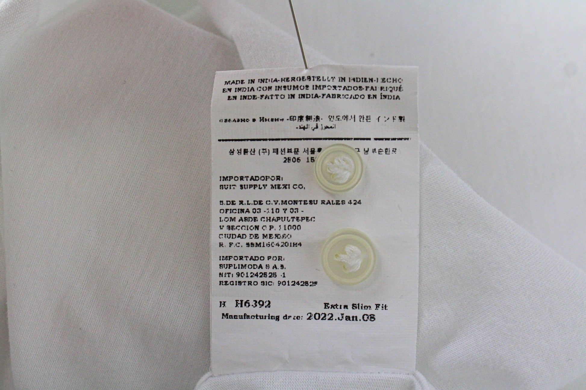 SUITSUPPLY Men's Spread T-Shirt 37/14.5 Extra Slim Fit Polo White Cotton
