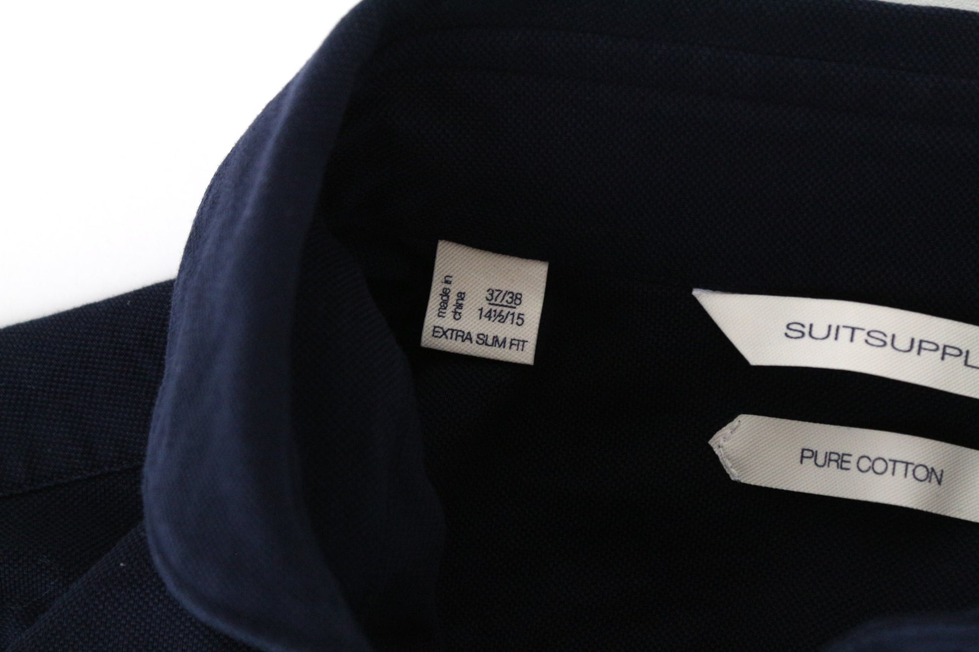 SUITSUPPLY Men's T-Shirt 37/38/14.5/15 Extra Slim Fit Polo Navy Pure Cotton