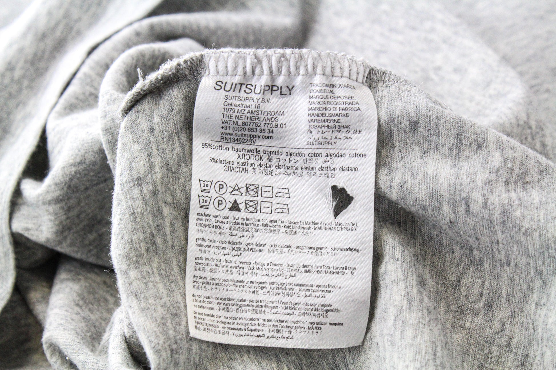 SUITSUPPLY Men's T-Shirt L Grey Polo Cotton Cashmere Cutaway Long Sleeve Casual