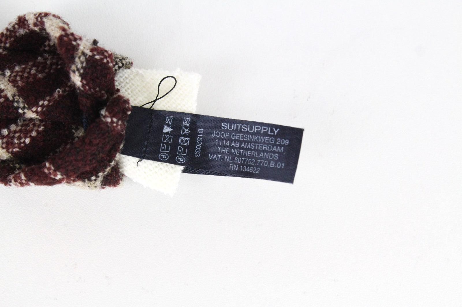 SUITSUPPLY Men's Tie ~150x8 cm Wine Red Knitted Plaid Check Wool Blend Formal