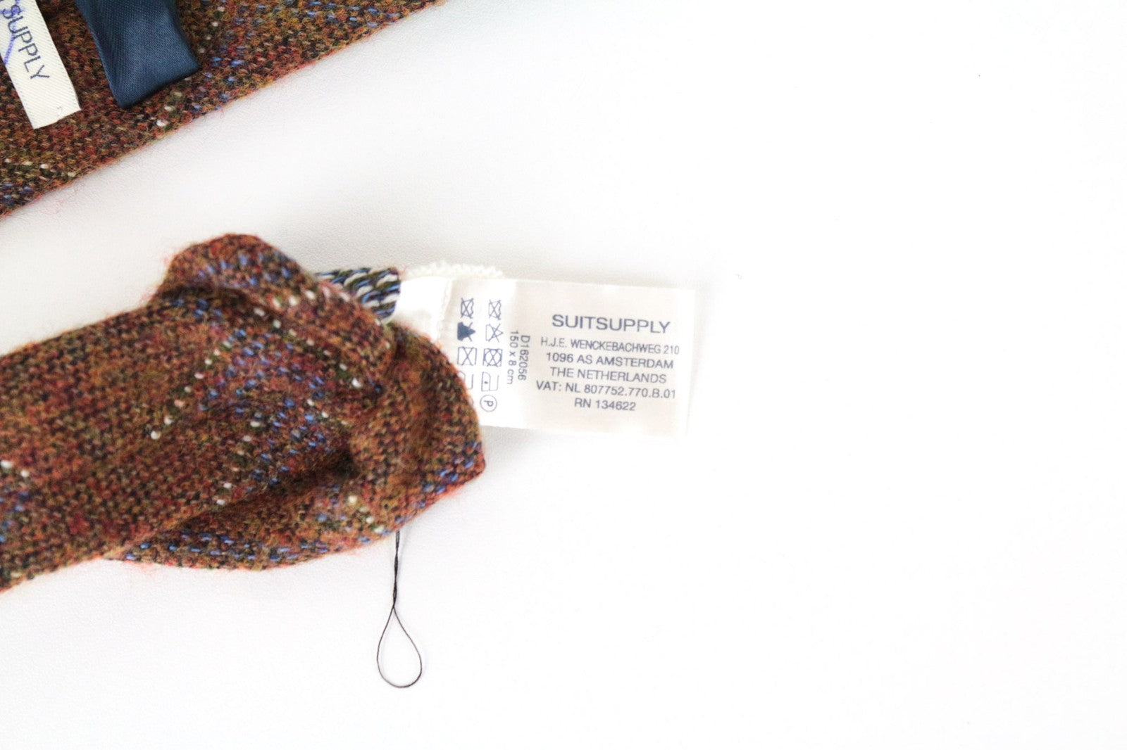 SUITSUPPLY Men's Tie 150x8cm Brown Checked Wool Silk Pointed-End Classic