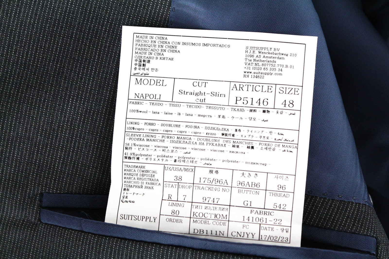 SUITSUPPLY Napoli Men's Blazer UK38R Slim Fit Super 110s Grey Wool Straight