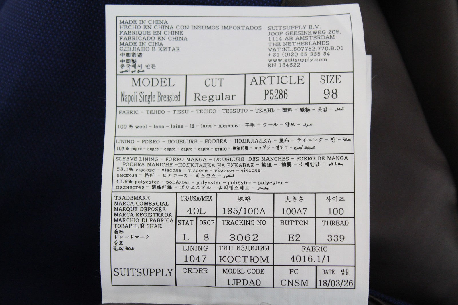 SUITSUPPLY Napoli Men's Blazer UK40L Single-Breasted Blue Pure Wool Formal