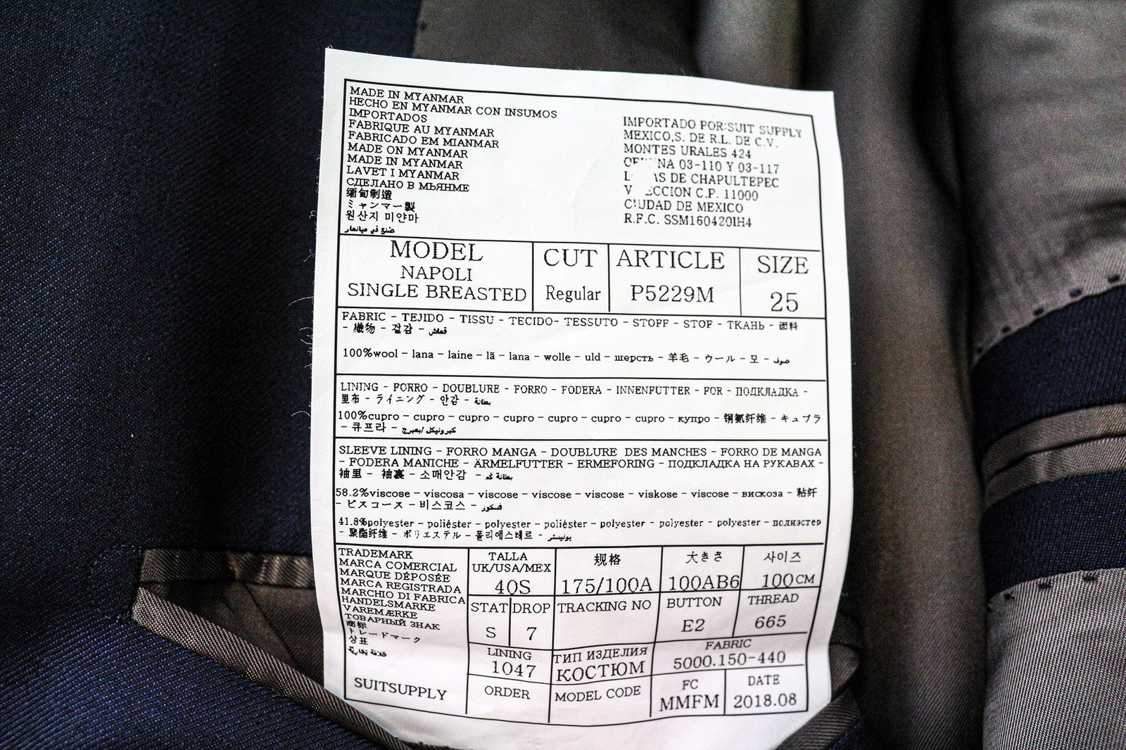 SUITSUPPLY Napoli Men's Blazer UK40S Super 110's Blue Pure Wool Single-Breast