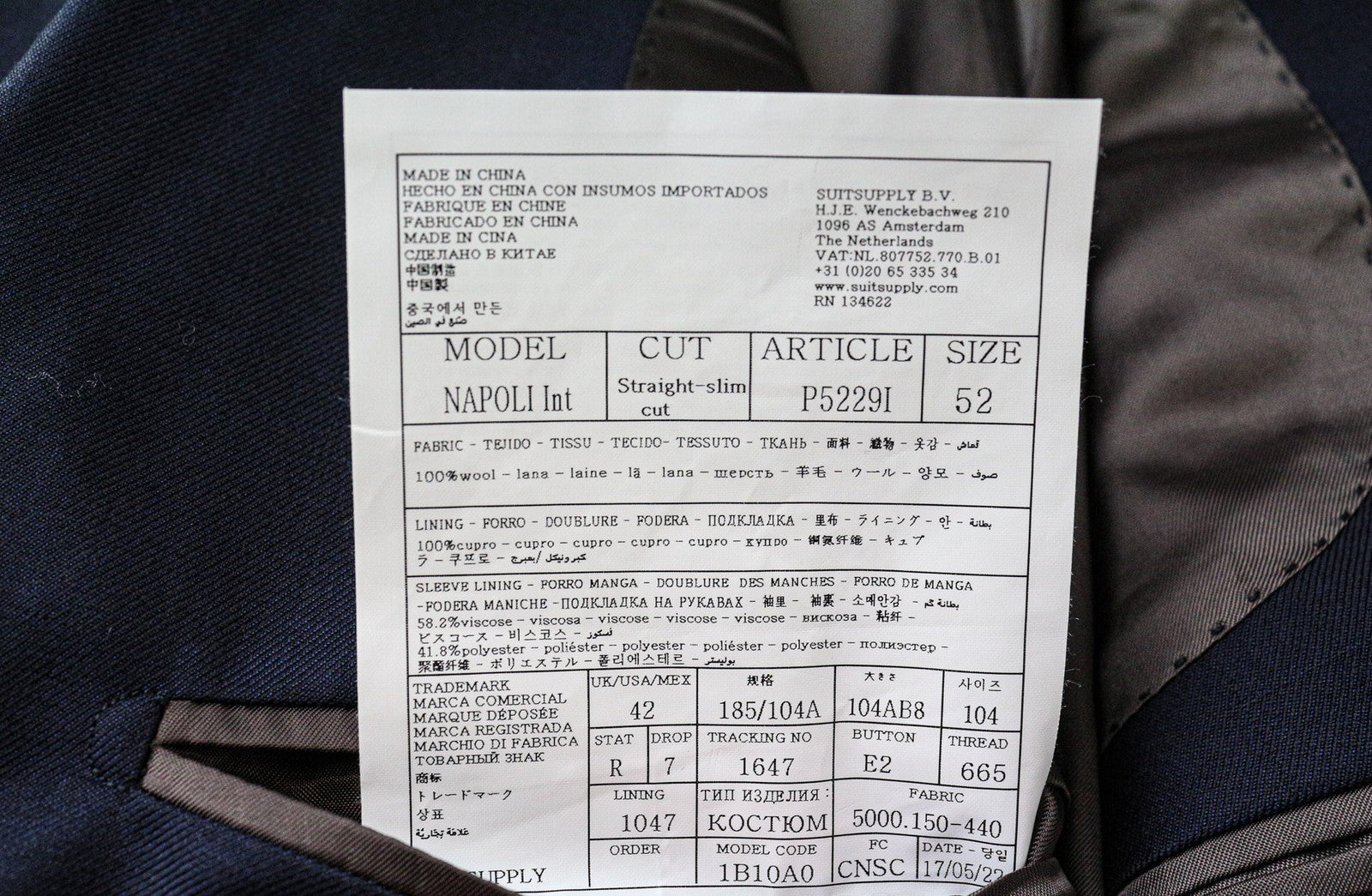 SUITSUPPLY Napoli Men's Blazer UK42R Blue Wool Super 110s Zignone Classic Fit