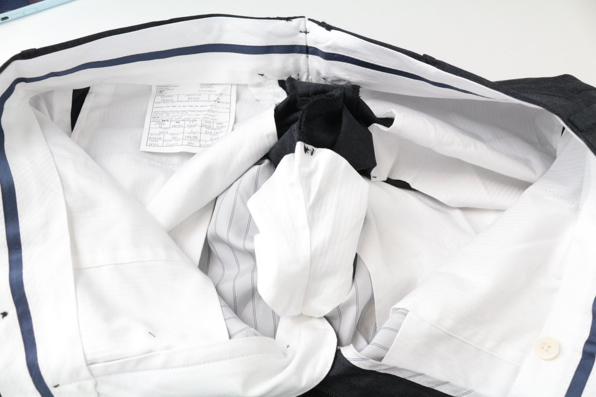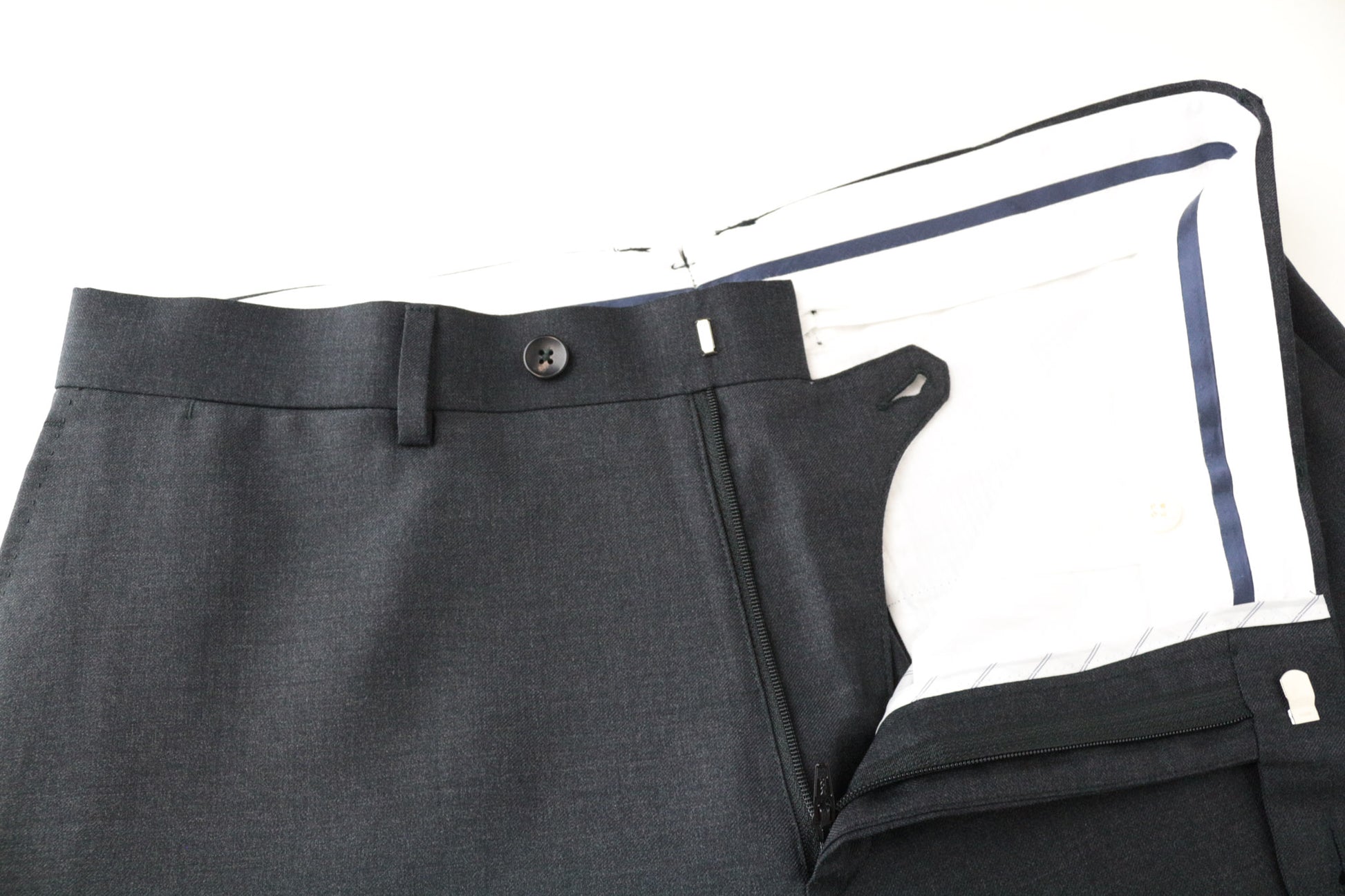 CONDITION: Used. Altered trousers' length, waistline width and around the crotch area. Stained on the trousers' inside. Please see added photos.