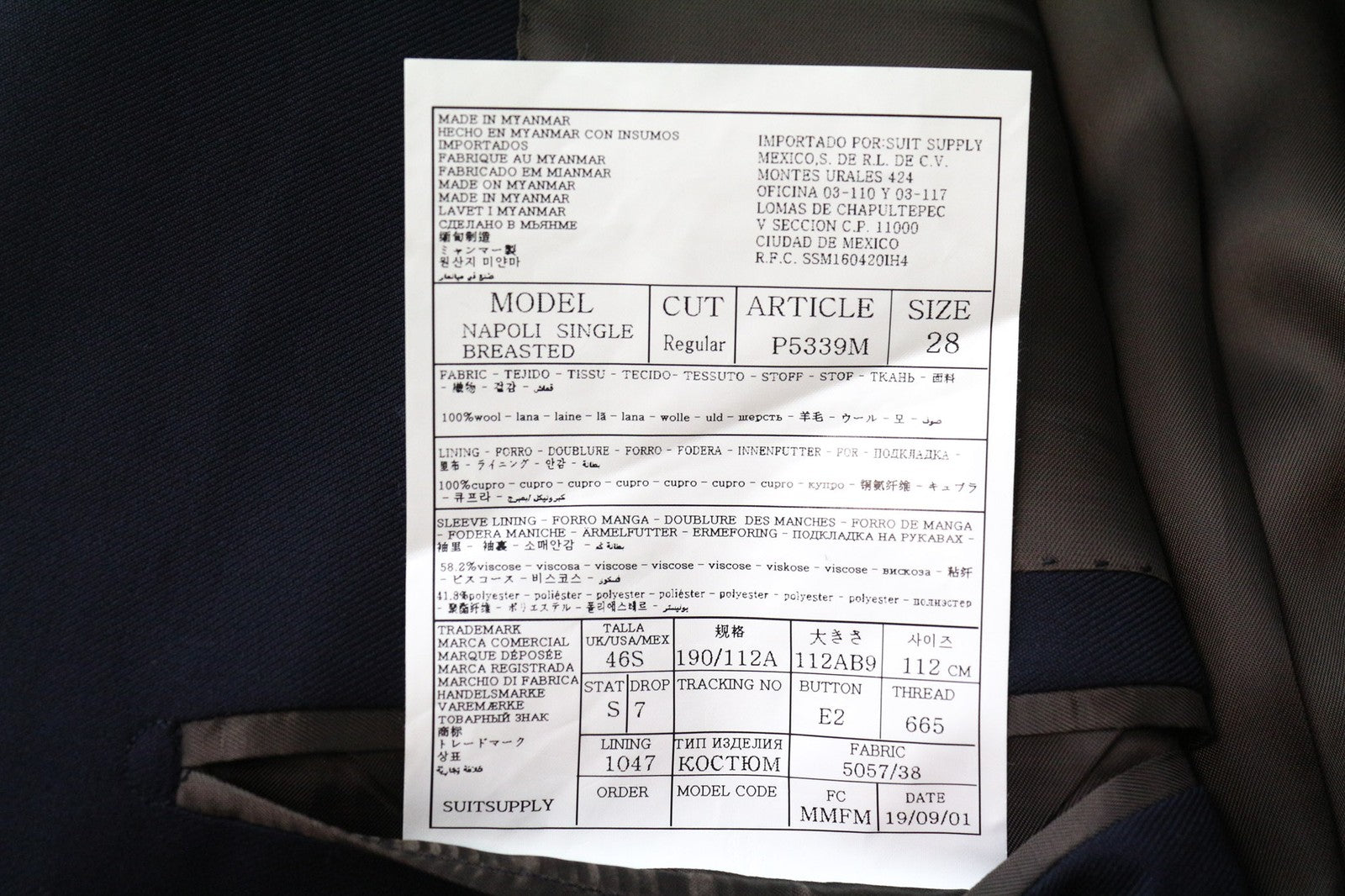 SUITSUPPLY Napoli Men's Suit UK46S Blue 2Pc Wool Single-Breasted Classic Formal