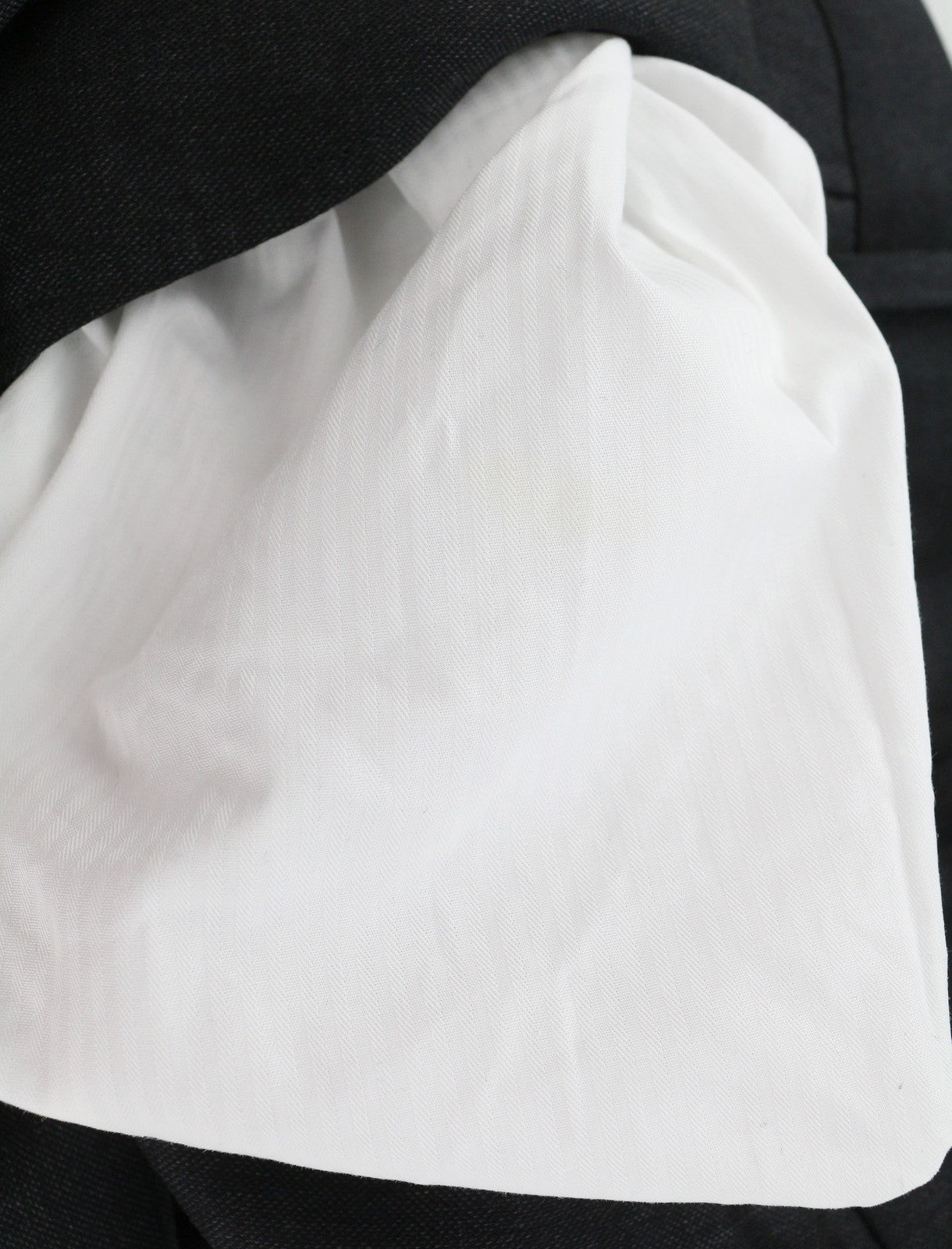 Condition: Pulled out thread on the blazer back. Small stains inside the trousers waist. Please see added photos.