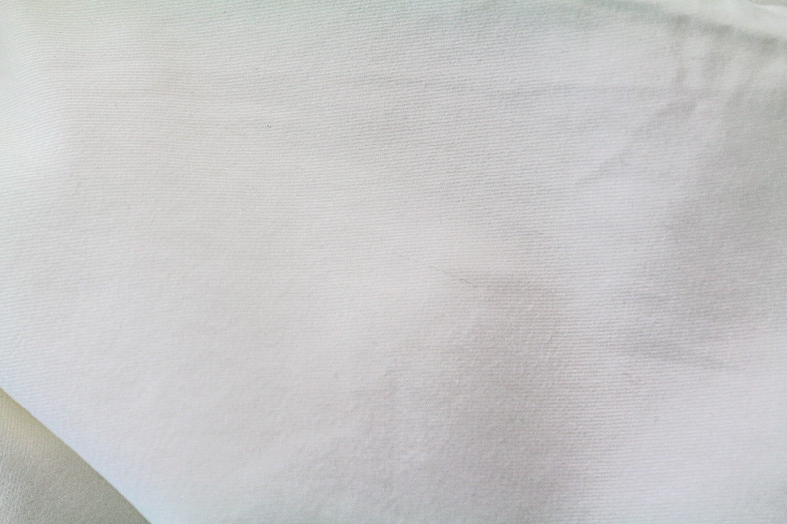Condition: Stained back. Pulled thread on the left leg. Please see added photos.