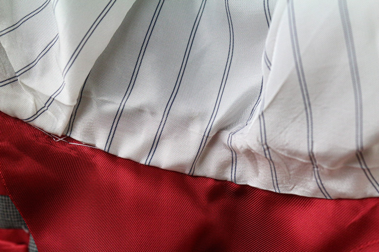 Stains on the back and lining, tears in the front and collar. Stained right armpit's area. Please see added photos.