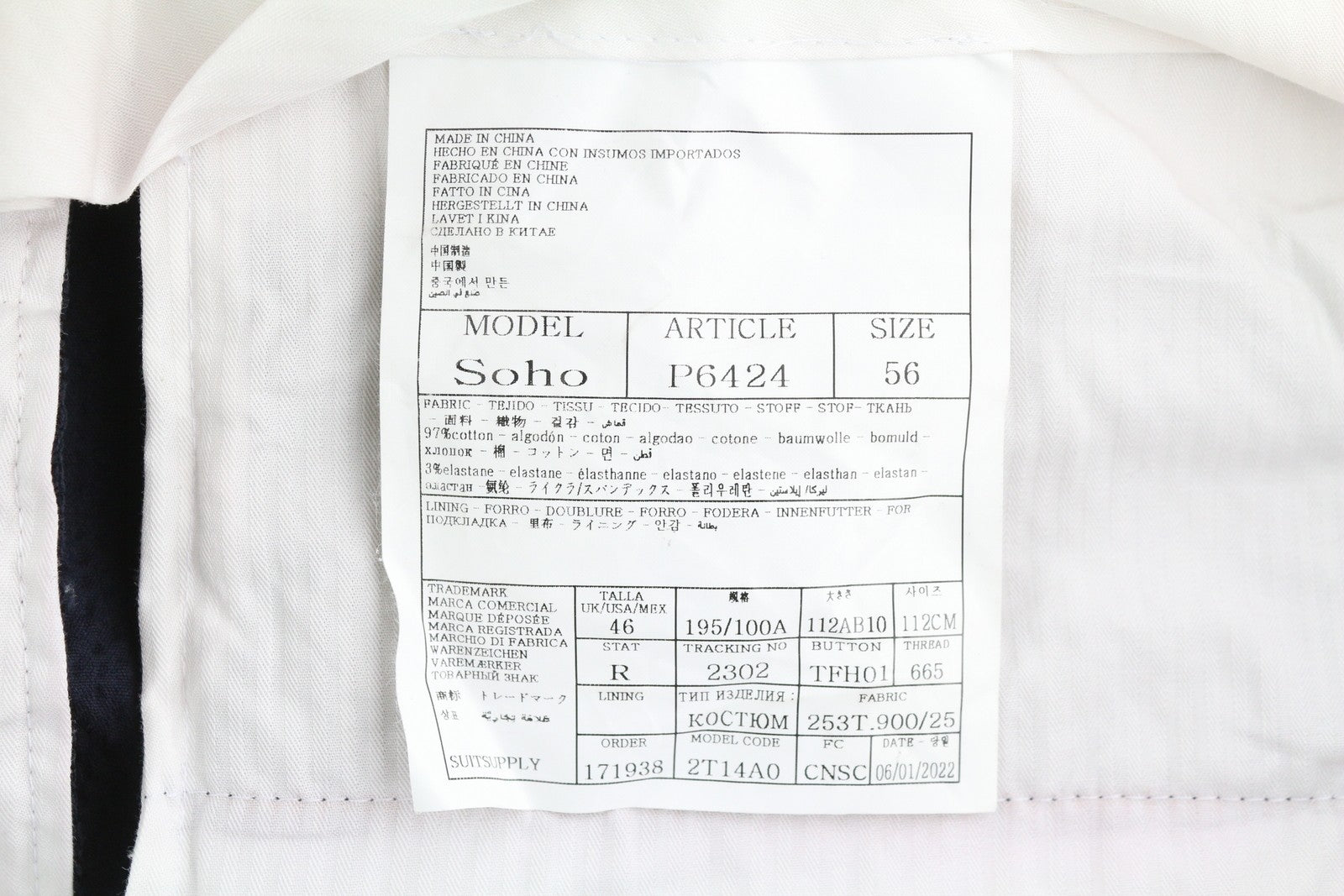 SUITSUPPLY Soho Men Trousers UK46R Dark Blue Seersucker Texture Tapered Fit
