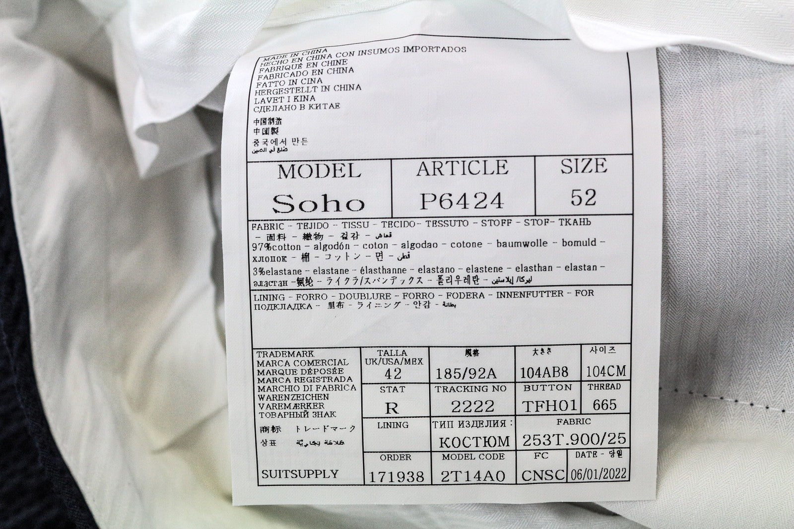 SUITSUPPLY Soho Men's Pants UK42R Navy Blue Stretch Cotton Pleated Dress Trouser