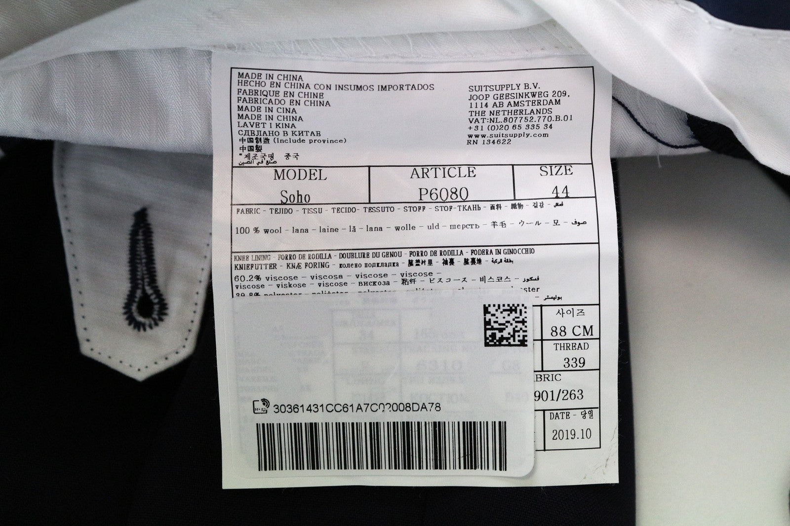 SUITSUPPLY Soho Men's Trousers UK34R Wool Dark Blue Pleated Front Formal Pants