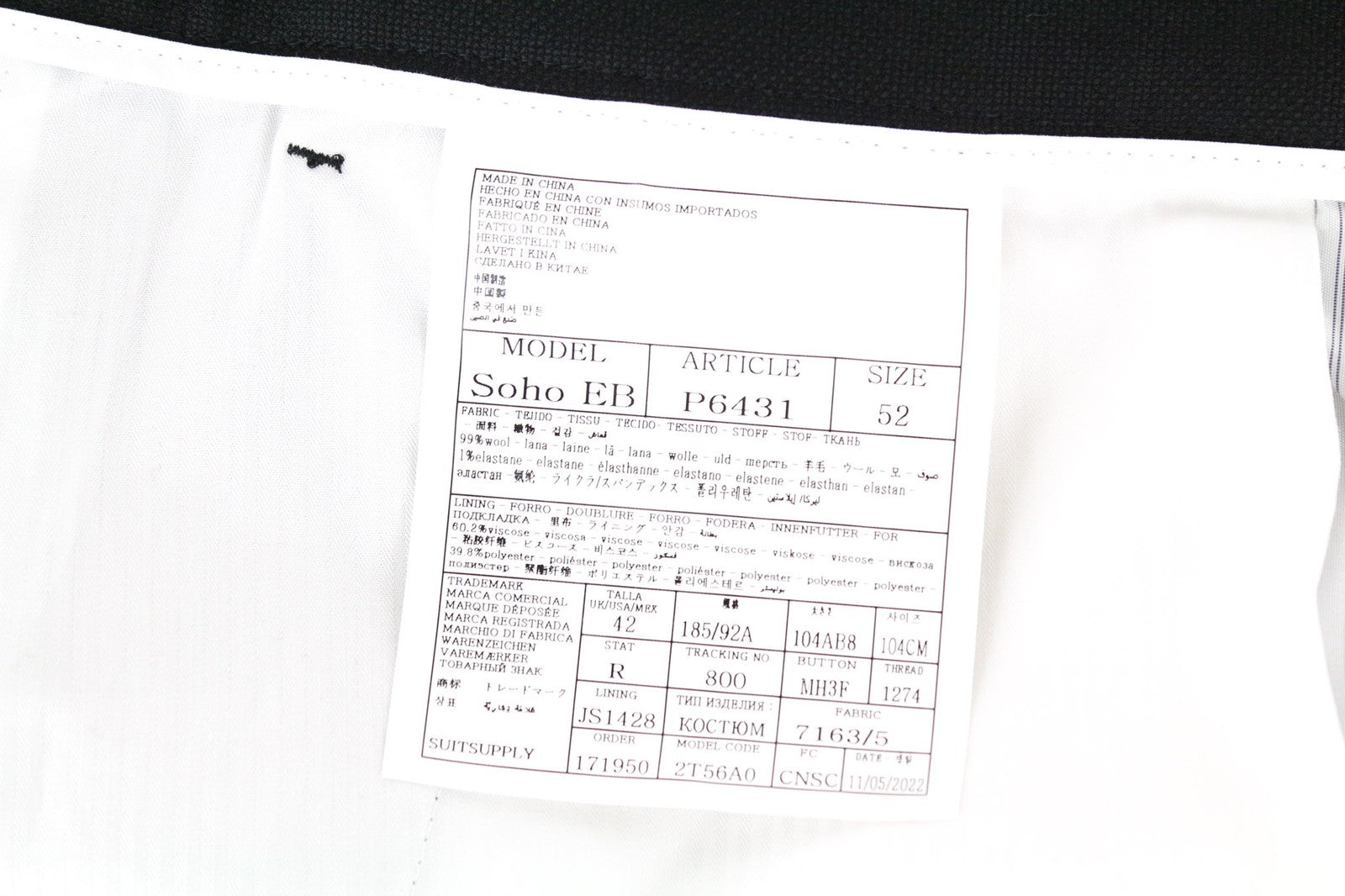 SUITSUPPLY Soho Men's UK42R Black Pleated Wool Stretch Side Adjusters Trousers
