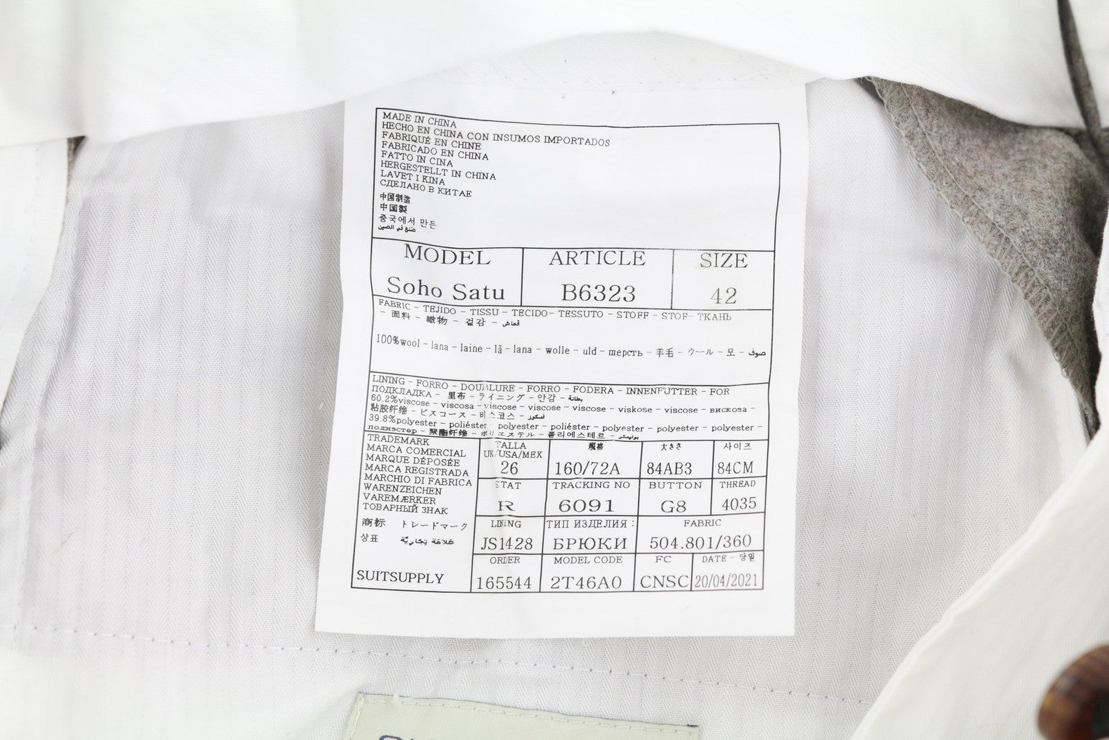SUITSUPPLY Soho Satu Men's Trousers UK26R Grey Melange Wool Flannel Turn-Up