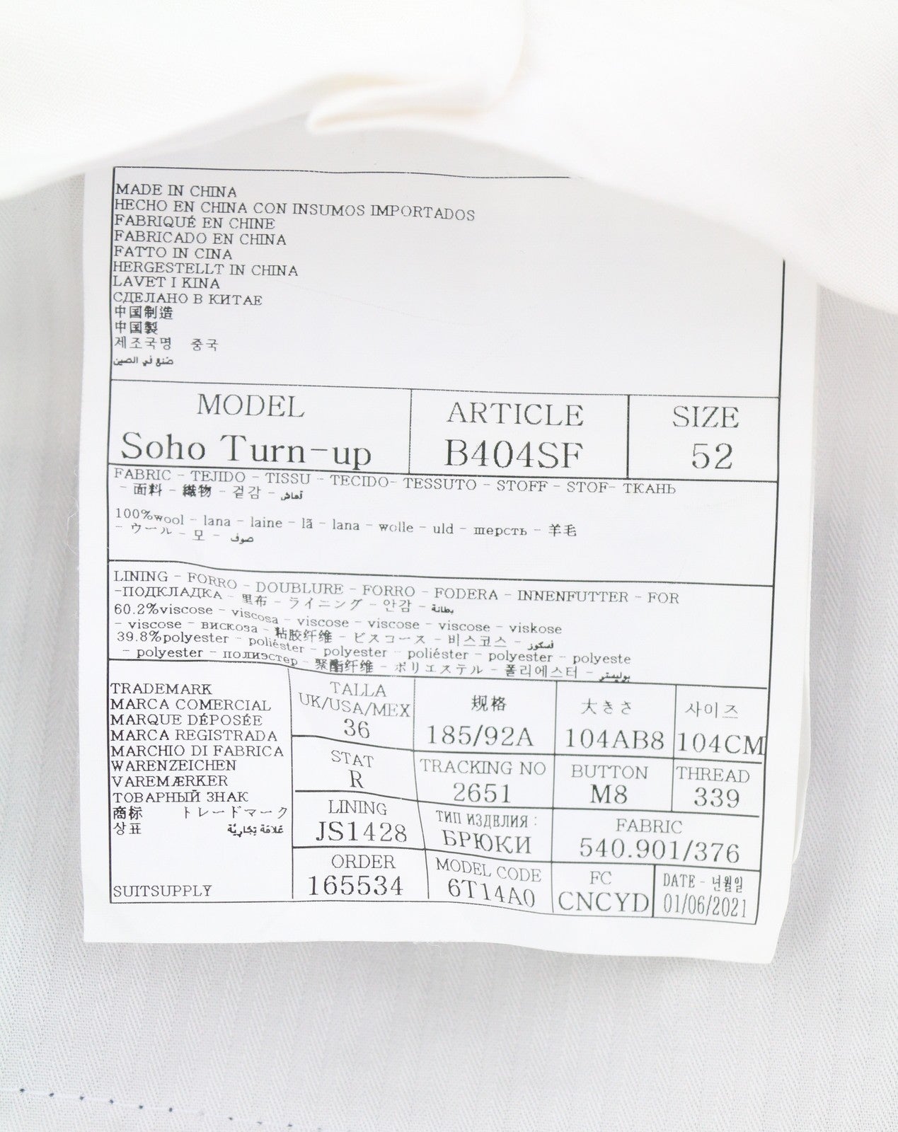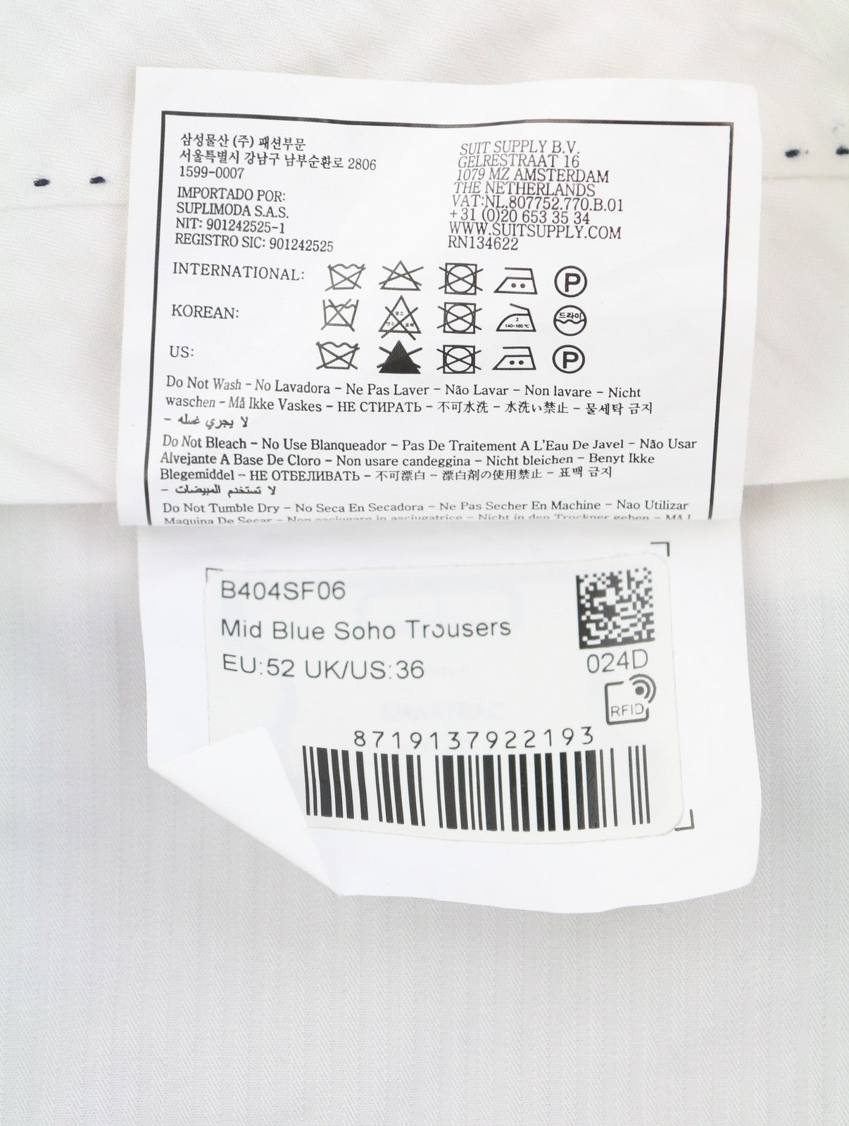 SUITSUPPLY Soho Turn-Up Men Trousers UK32R Blue Pure Wool S120 Tapered Fit Zip