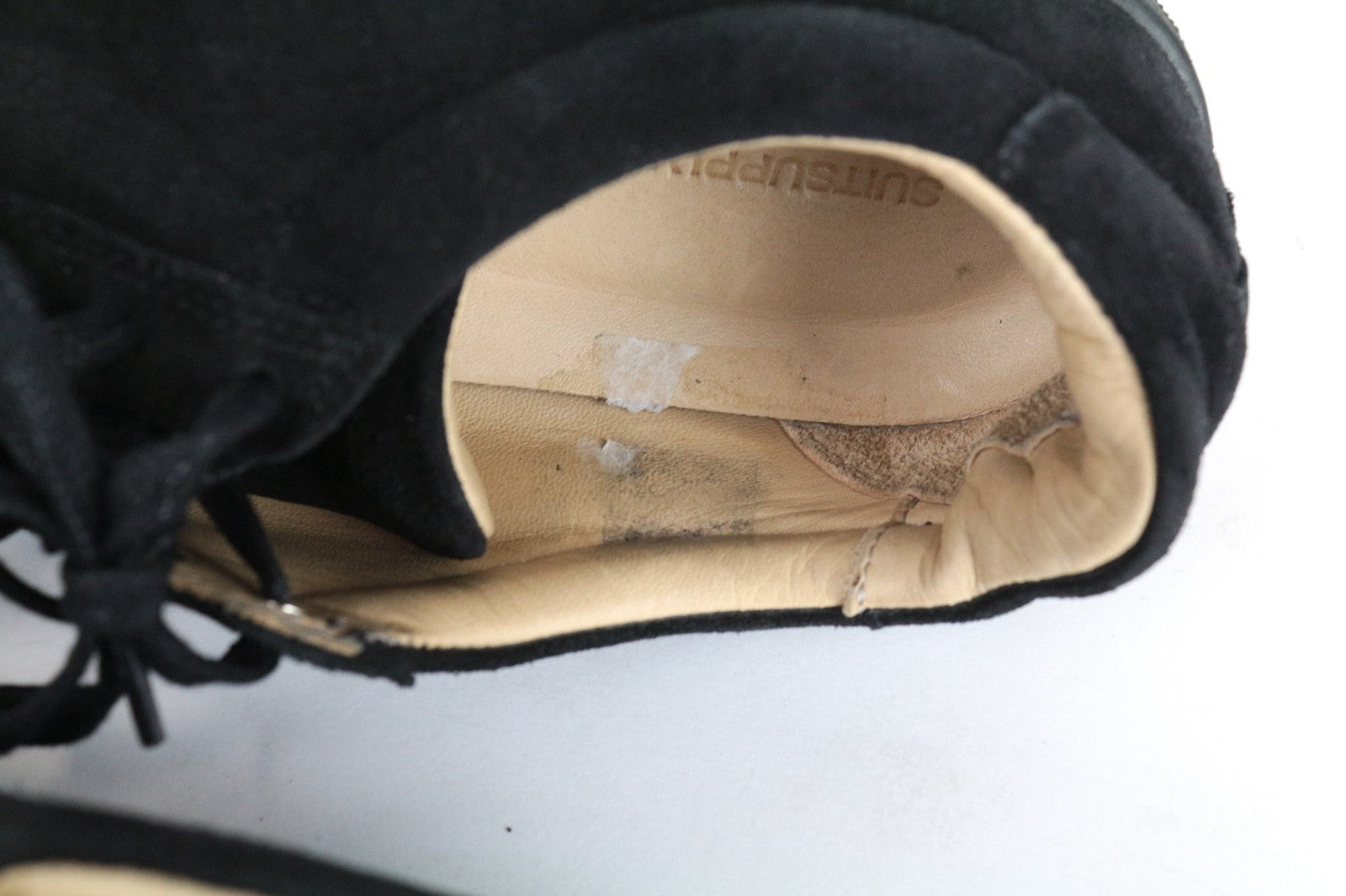 Condition: Used. Rubbed off suede, wrinkles and imprints. Tear in the right shoe. Sticky spot on the inside. Please see added photos.