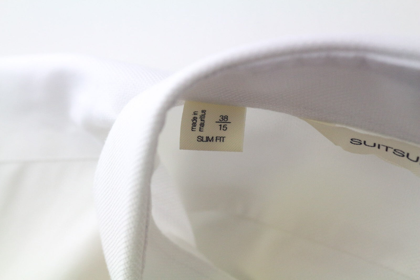 SUITSUPPLY Traveller Men Shirt 38/15 Slim Pure Cotton White Classic Button-Up