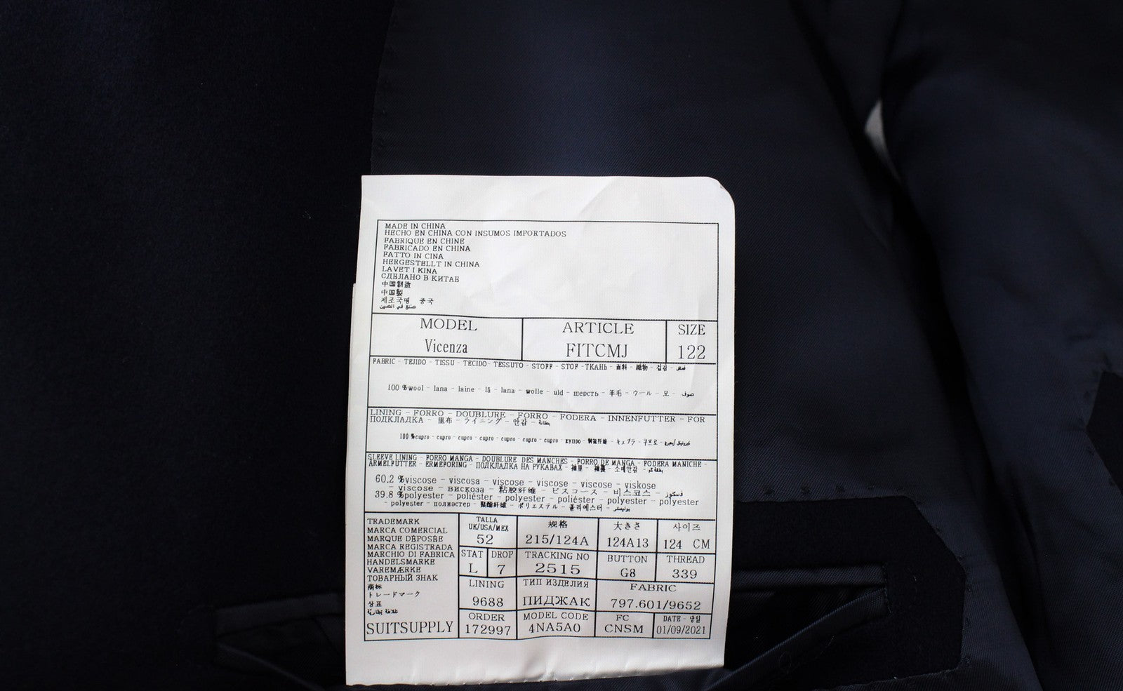 SUITSUPPLY Vicenza UK52L Men's Wool Coat Navy Blue Formal Lined