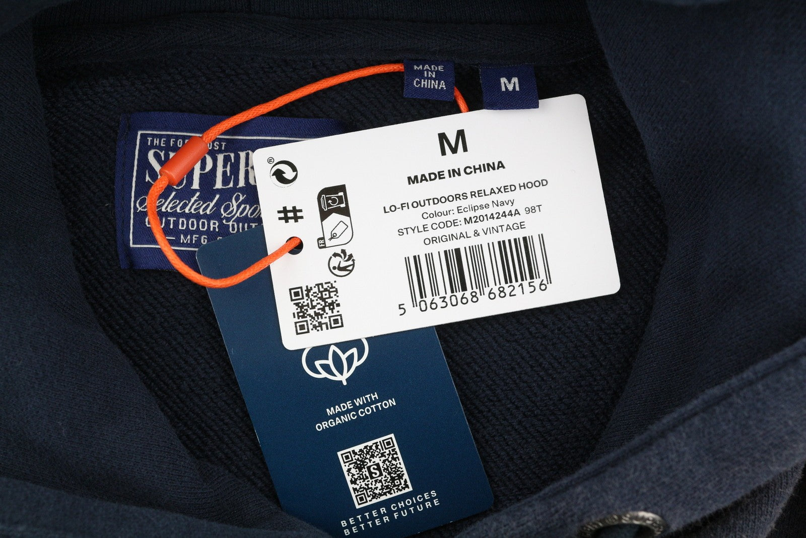 SUPERDRY Lo-Fi Outdoors Relaxed Hood Men Hoodie M Blue Faded Kangaroo Pullover